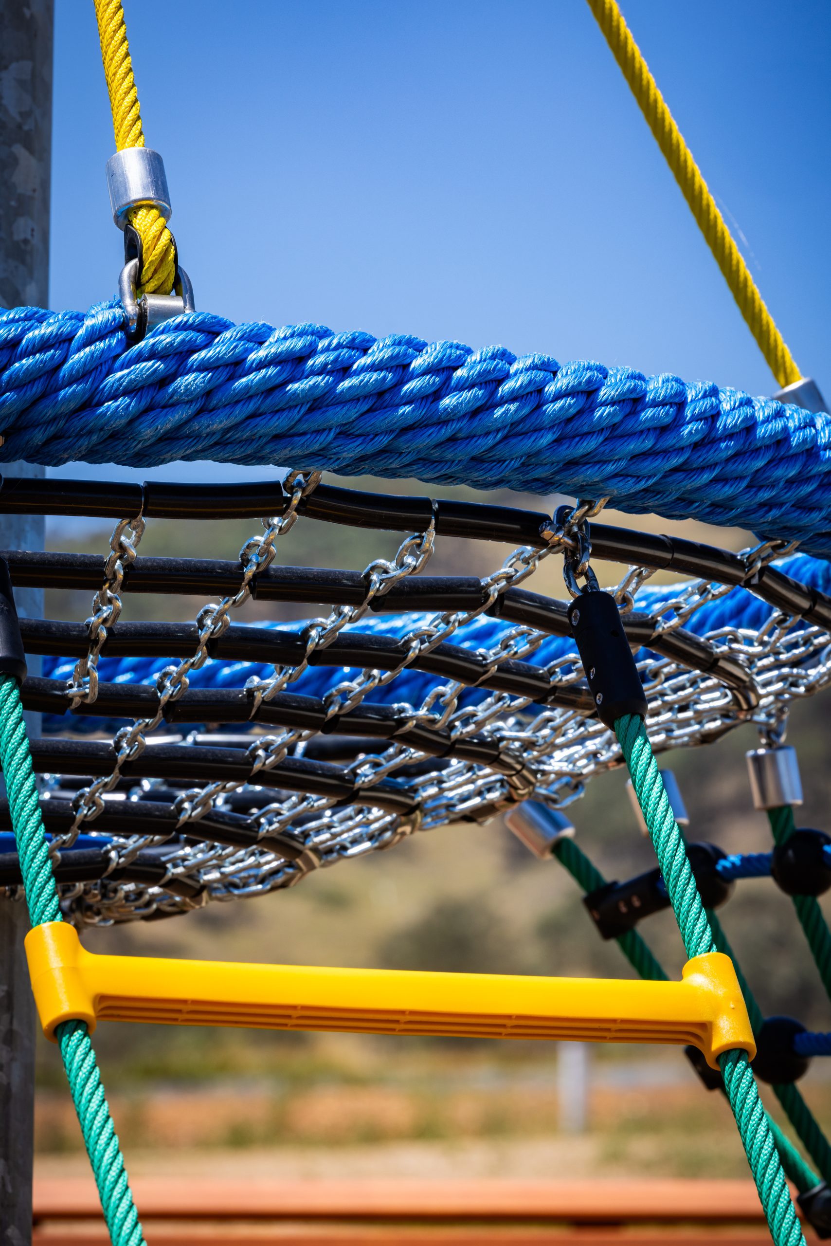 Popular toddler unit with 1200mm diameter basket, with climbing nets & ropes. 2m high, with only 1m fall height.