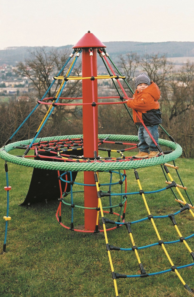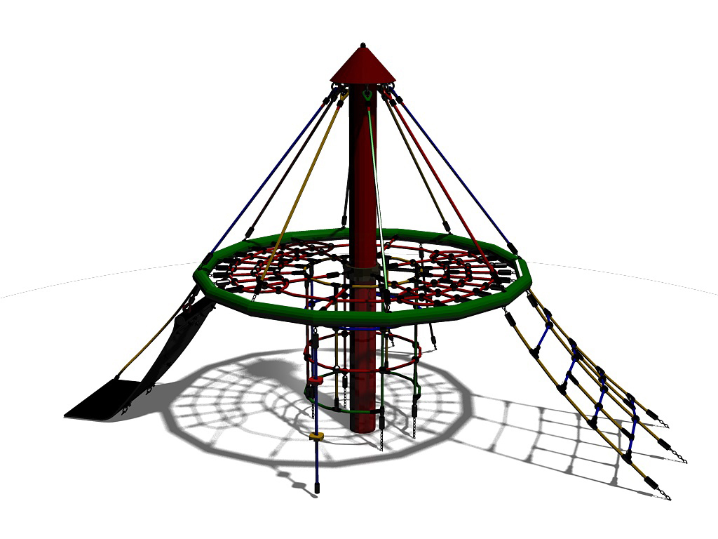 Ring wound round with rope, with scramble net, rubber membrane climber, rope climber & rope ladder.  Excellent for the little ones, only 1.0m fall height.