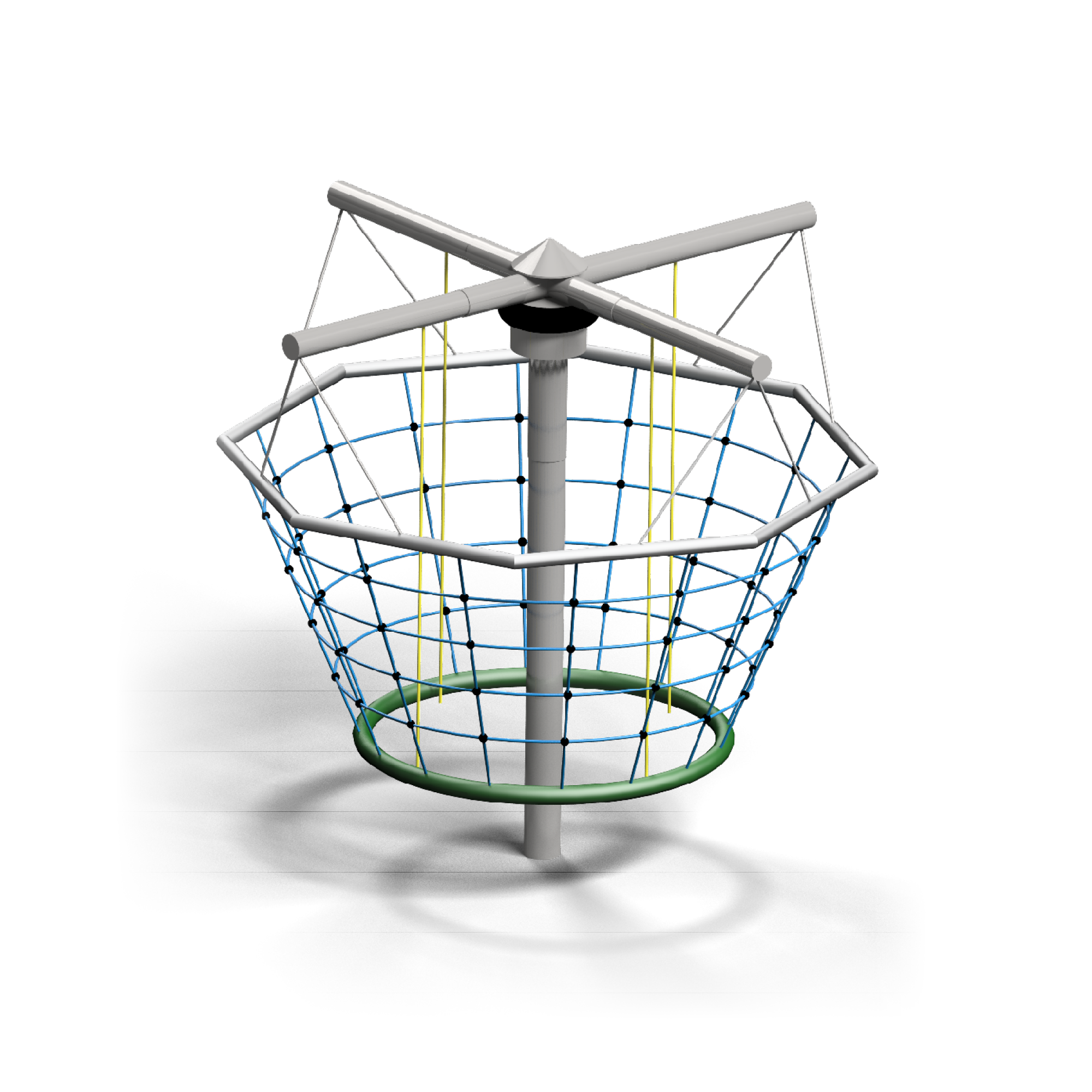 Fine tune your acrobatic skills! A combination of climbing ropes, pommel seats & climbing nets, there will be fun for all while rotating around!