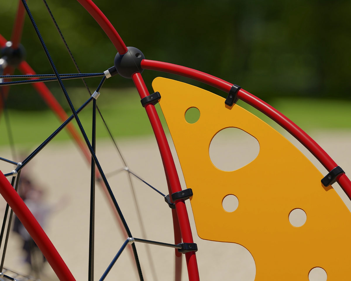 Unique design with large membrane seat at the top – climb up & around then you can sit & chill out. Special ground support means no concrete is required! Makes this an ideal option for schools that may be on the move (or shifting from one park to another) …