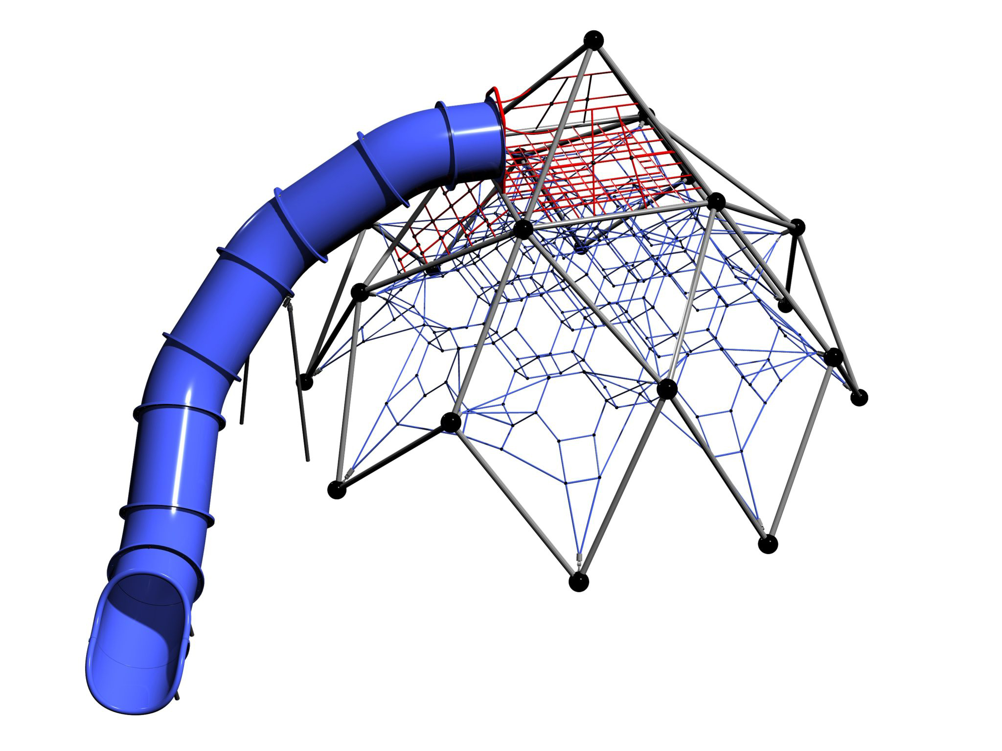 Another variant of the 4.45m high Mt Tongariro – added fun with the horizontal net in the upper storey – and choose a Rotational-moulded plastic slide or Stainless Steel slide for a quick exit!