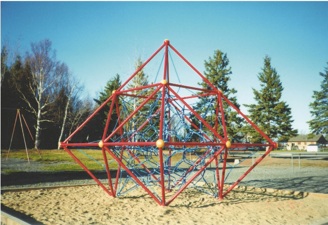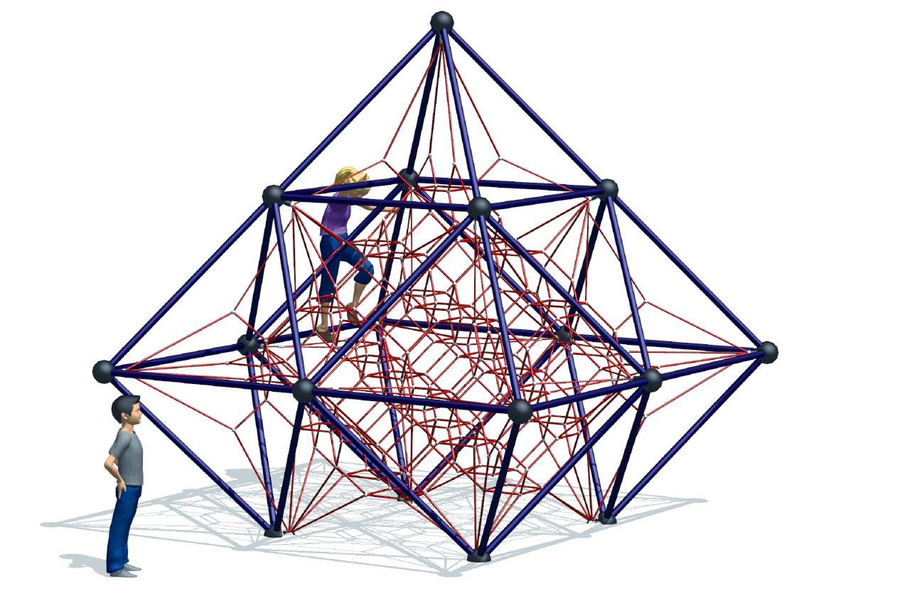 4.45m high climbing structure with generous play volume for 32+ users! Also available as Triangulum model with four sitting nets and a resting net.