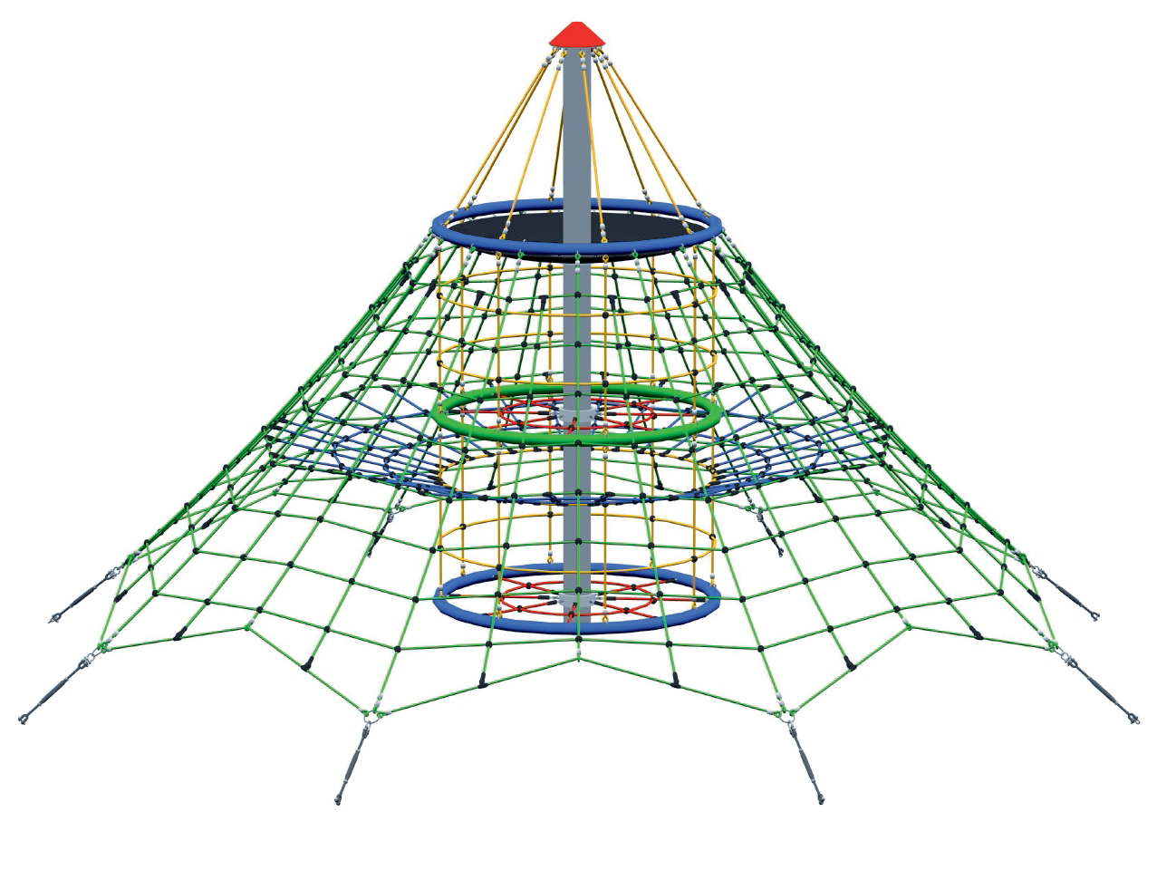 4.5M high climbing net, complete with 1900mm diameter nest basket near the top! Includes additional features such as horizontal play net & 2 Climbing Chimney Rings.