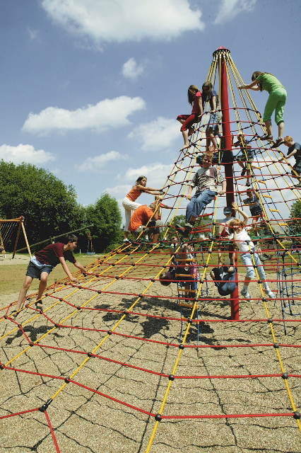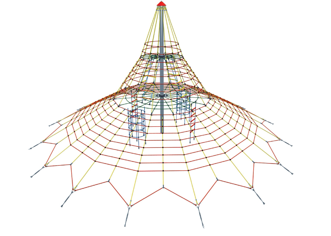 A unique climbing net – 5.7metres high, alternative to a standard centre-mast tower with additional features in each net including:
