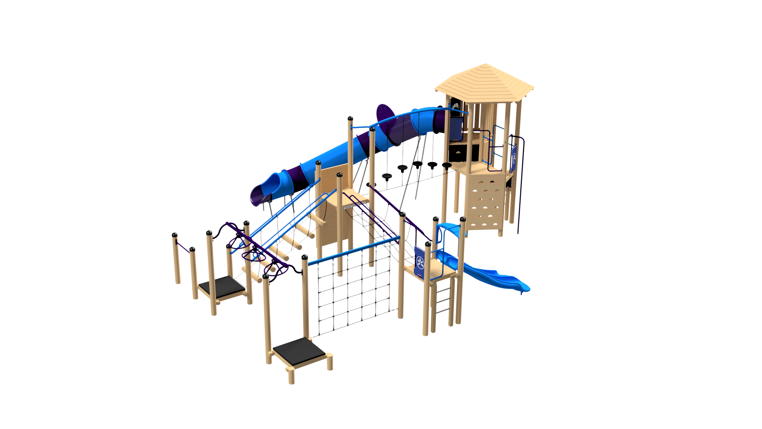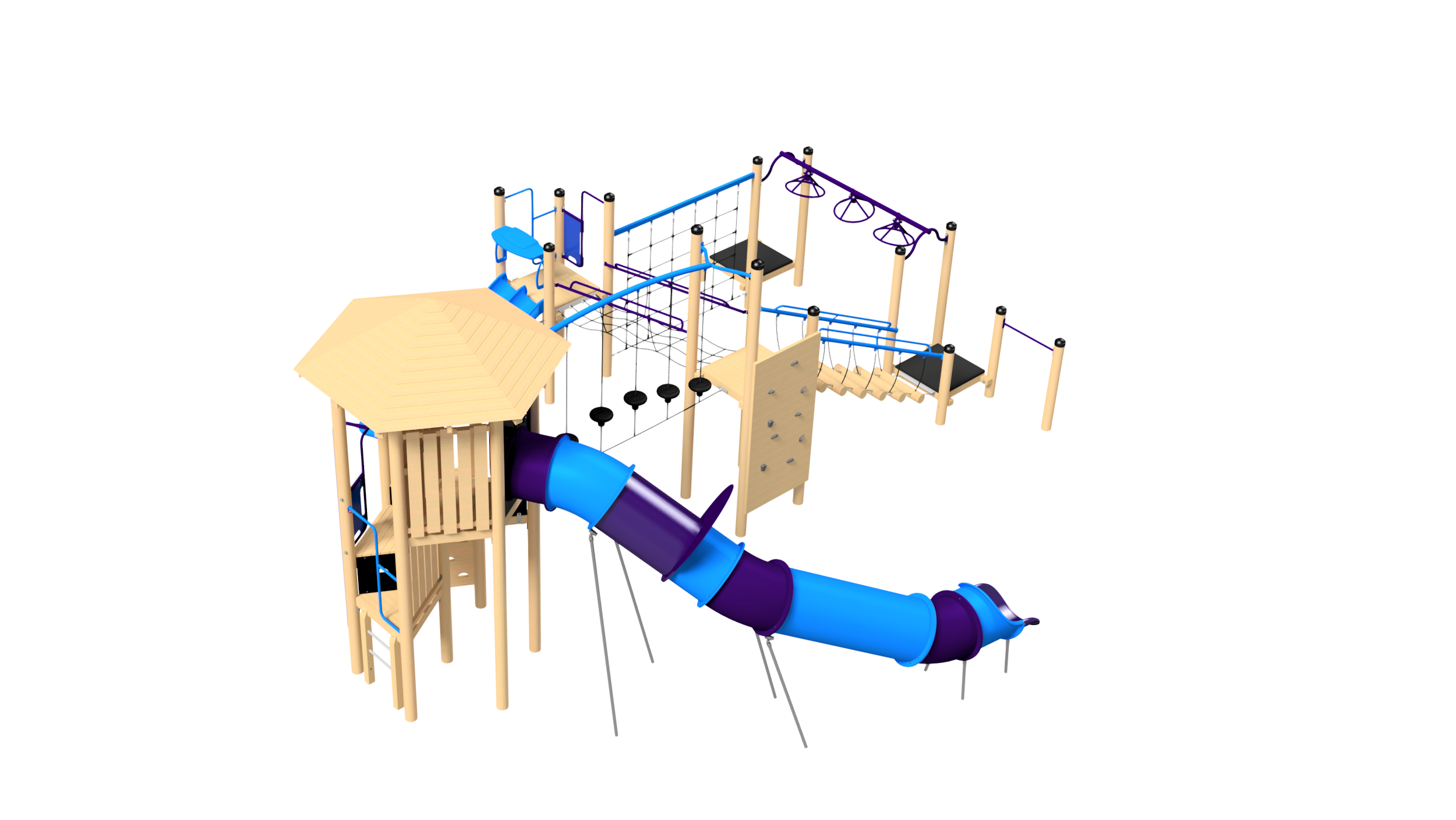 The Activity Hex Tower 8202 is an action packed hexagonal-shaped tower! This clever design features an awesome fitness course including, turbo challenge, commando wall, flexi bridge, incline log bridge and many more exciting activities which connect back to the main hex tower via a 2.1m high suspended stepping stones.