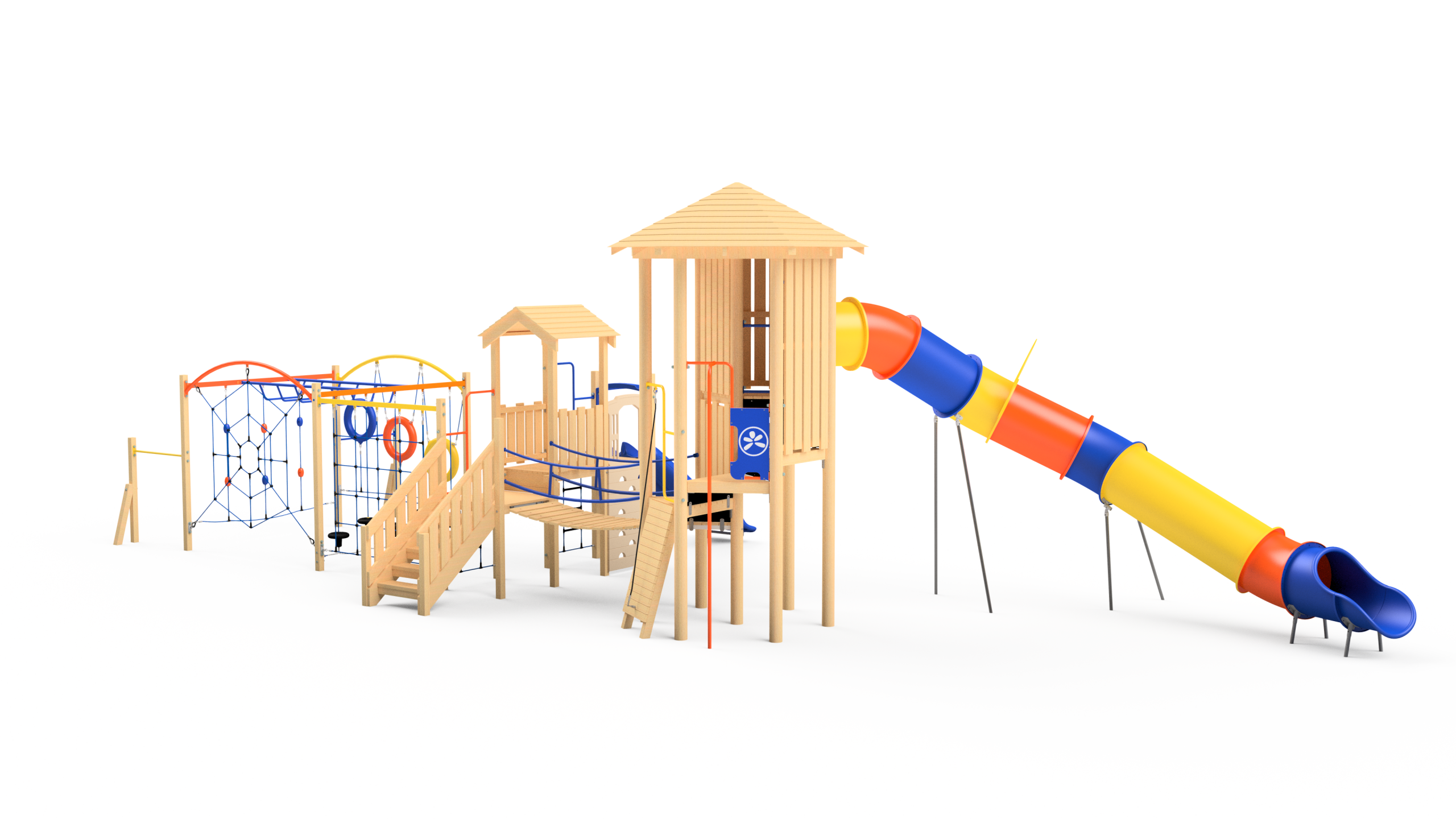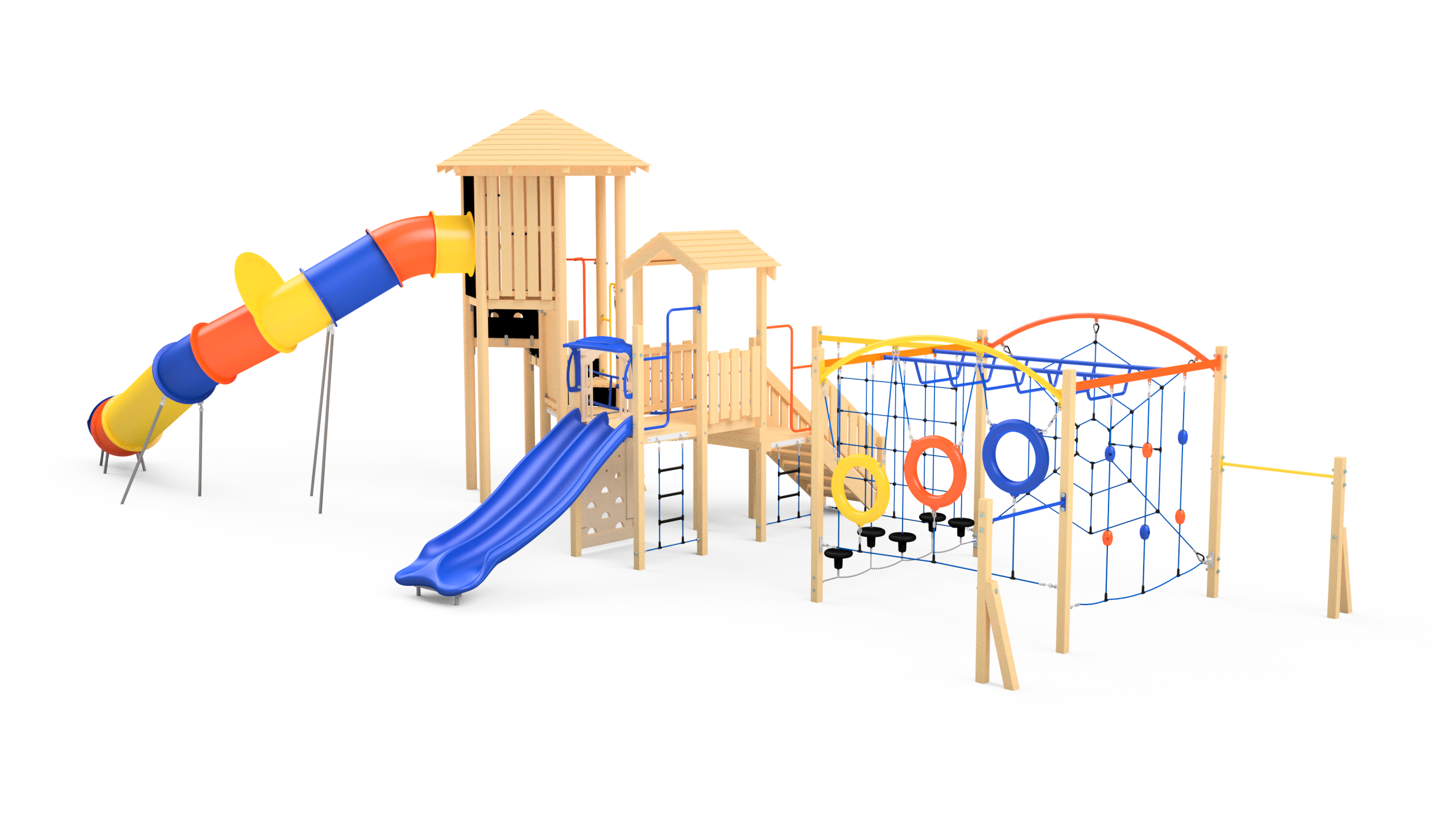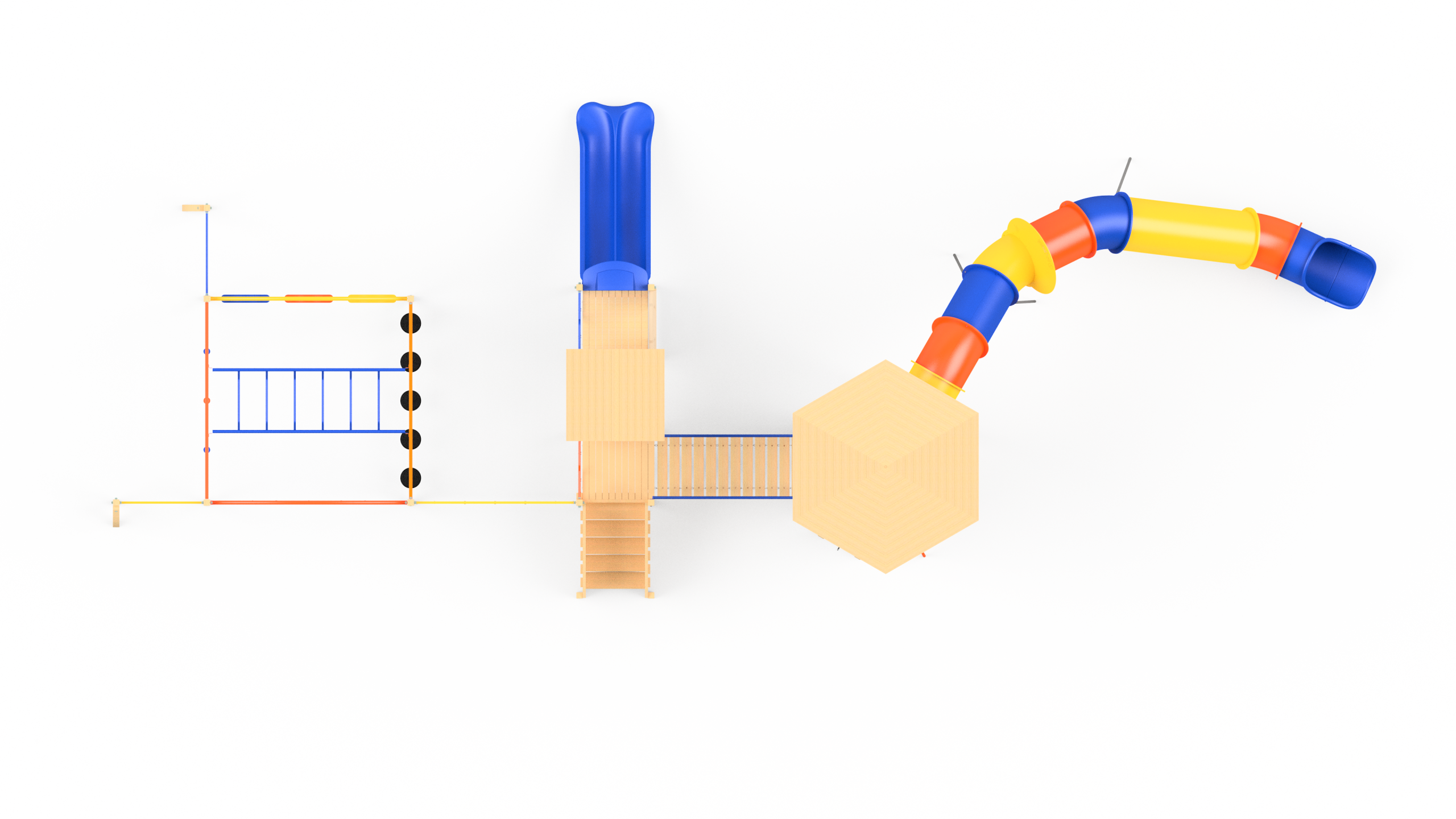 The Activity Hex Tower 8205 is an action packed hexagonal-shaped tower which connects to a second playground module! This clever design features an awesome fitness course including spider web, stepping stones, scaling wall and many more exciting activities which connect back to the main hex tower via a slat bridge.