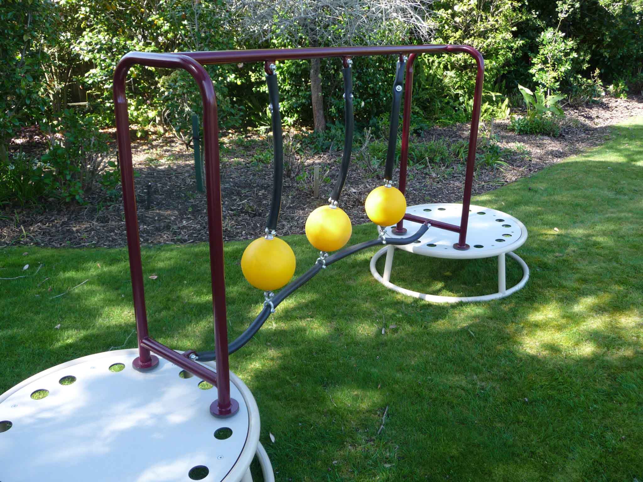 Swinging, spinning spherical balls make this activity challenging and unique, at the same time accents the playground with a cultural side: