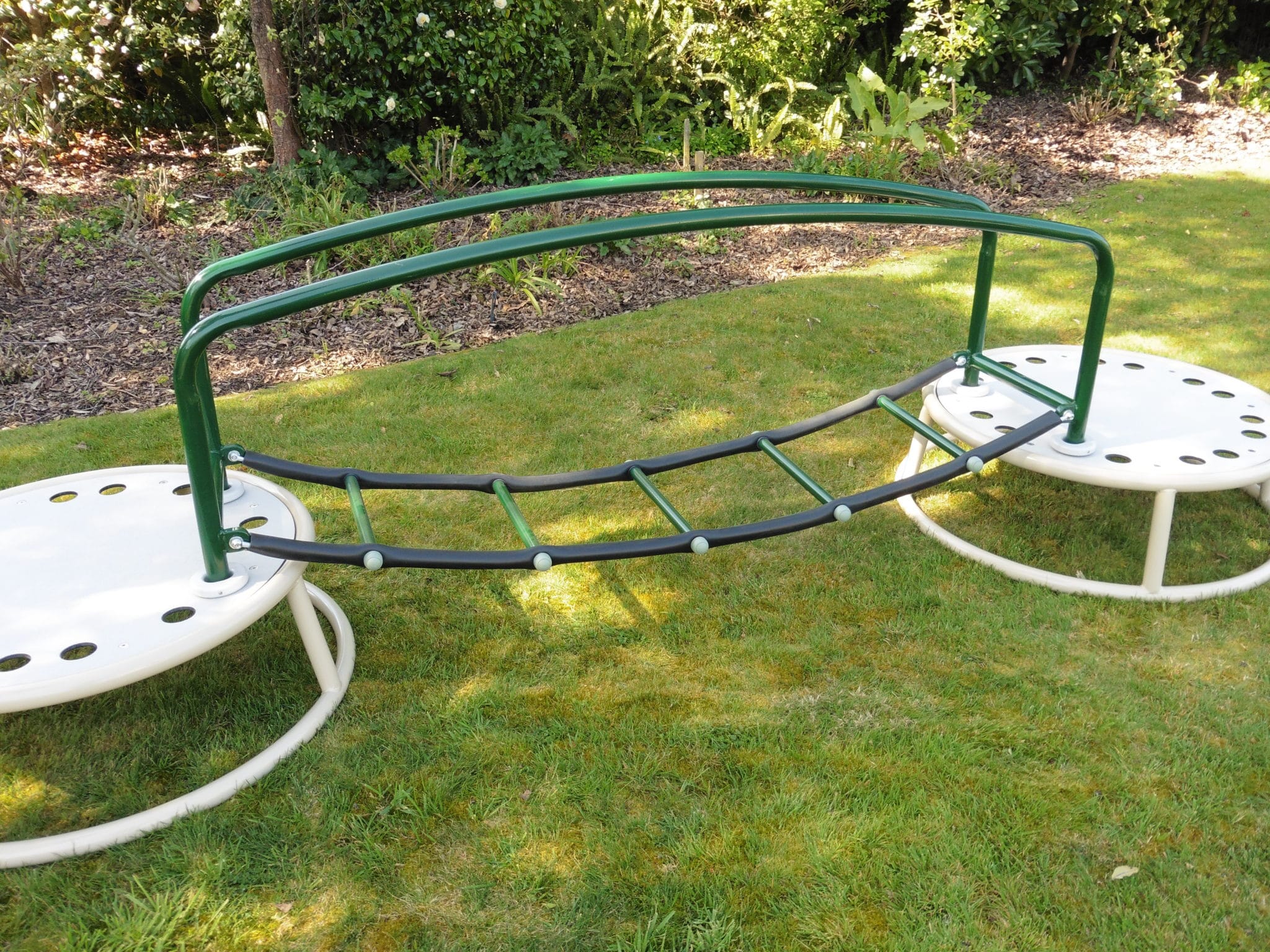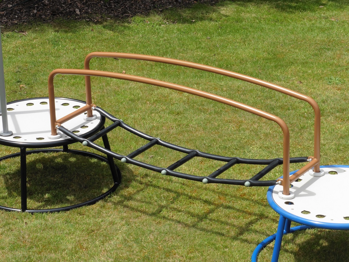 Simulate stepping through the jungle with the swaying rungs of this Tarzan Bridge, creating a more challenging activity for the little ones.