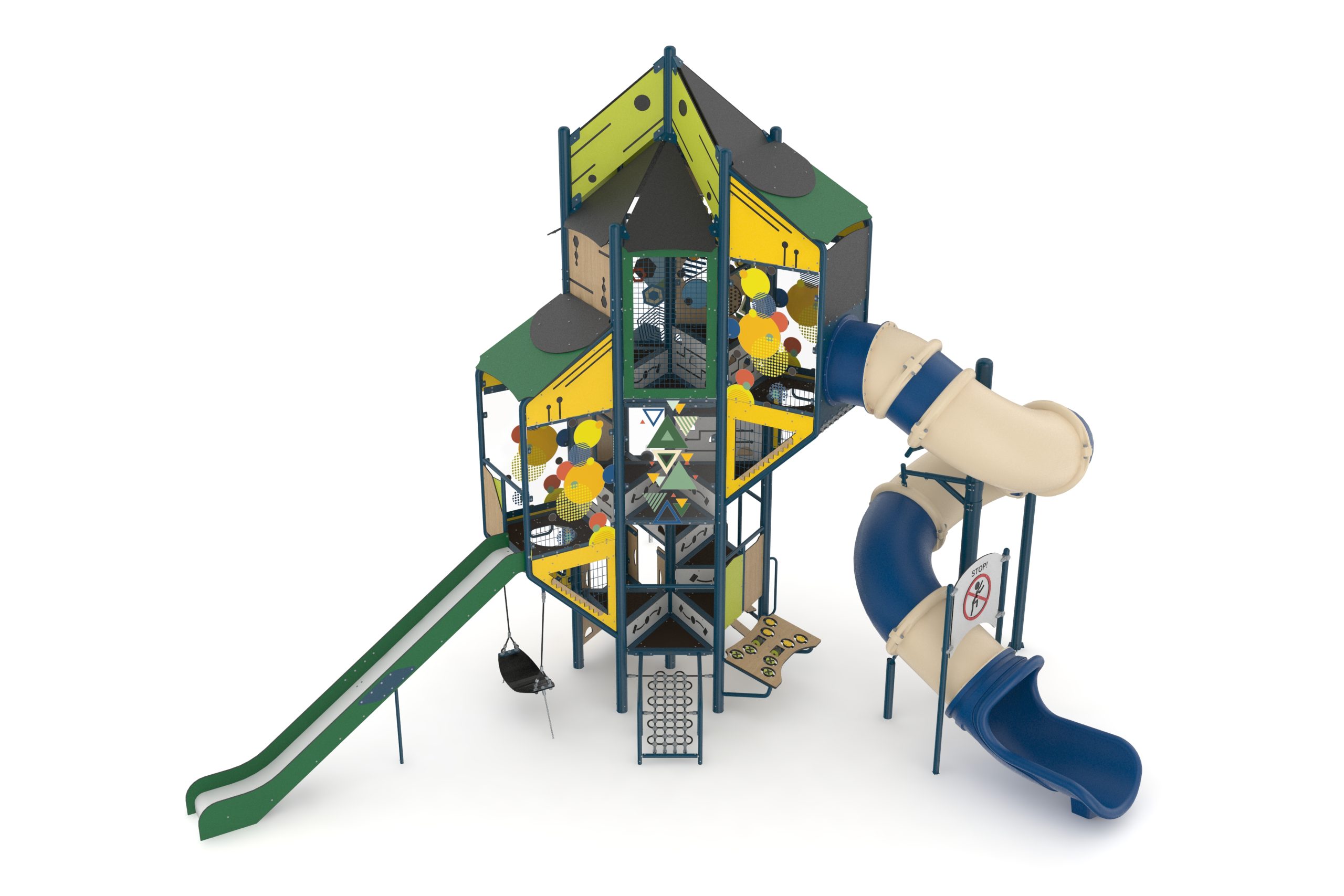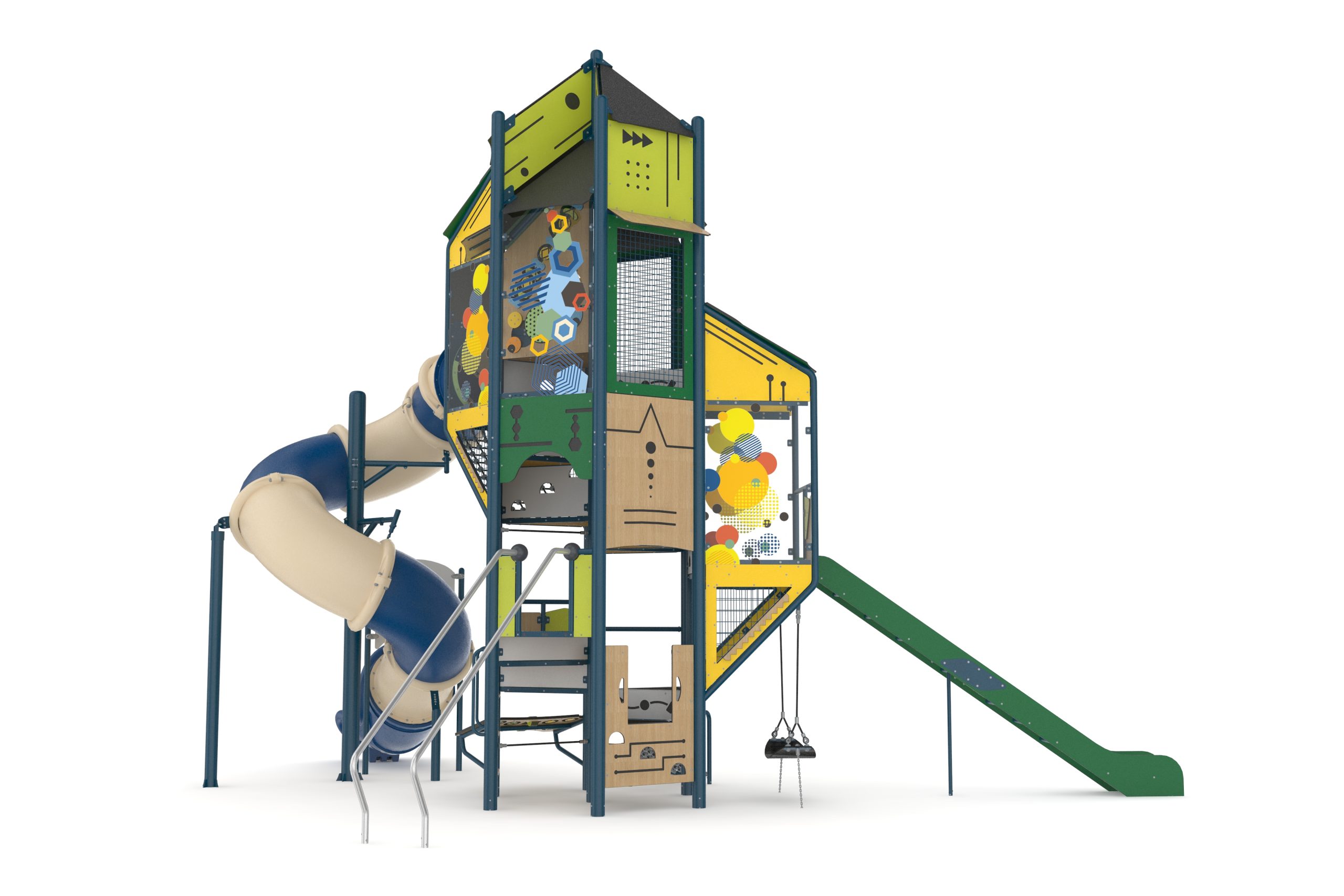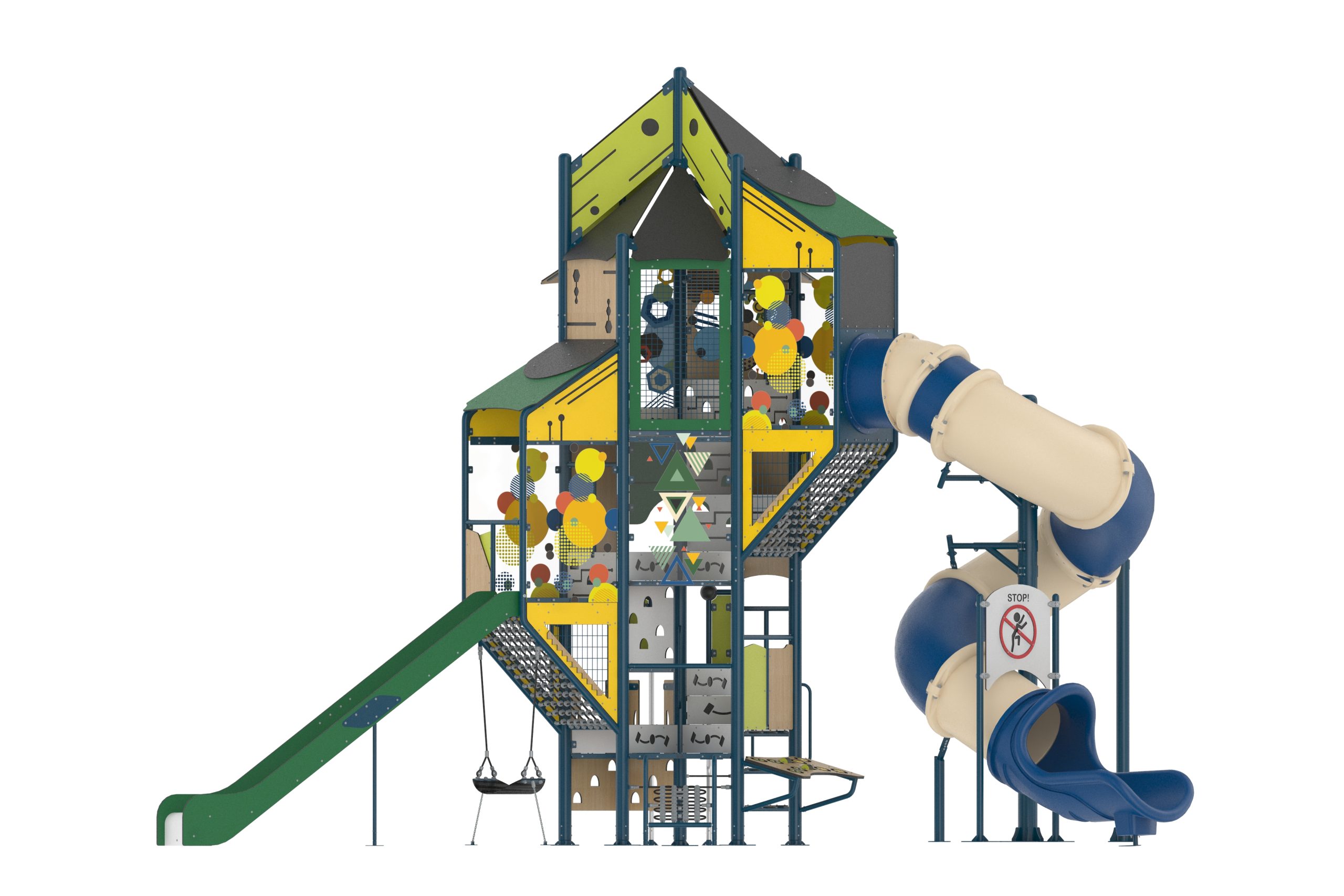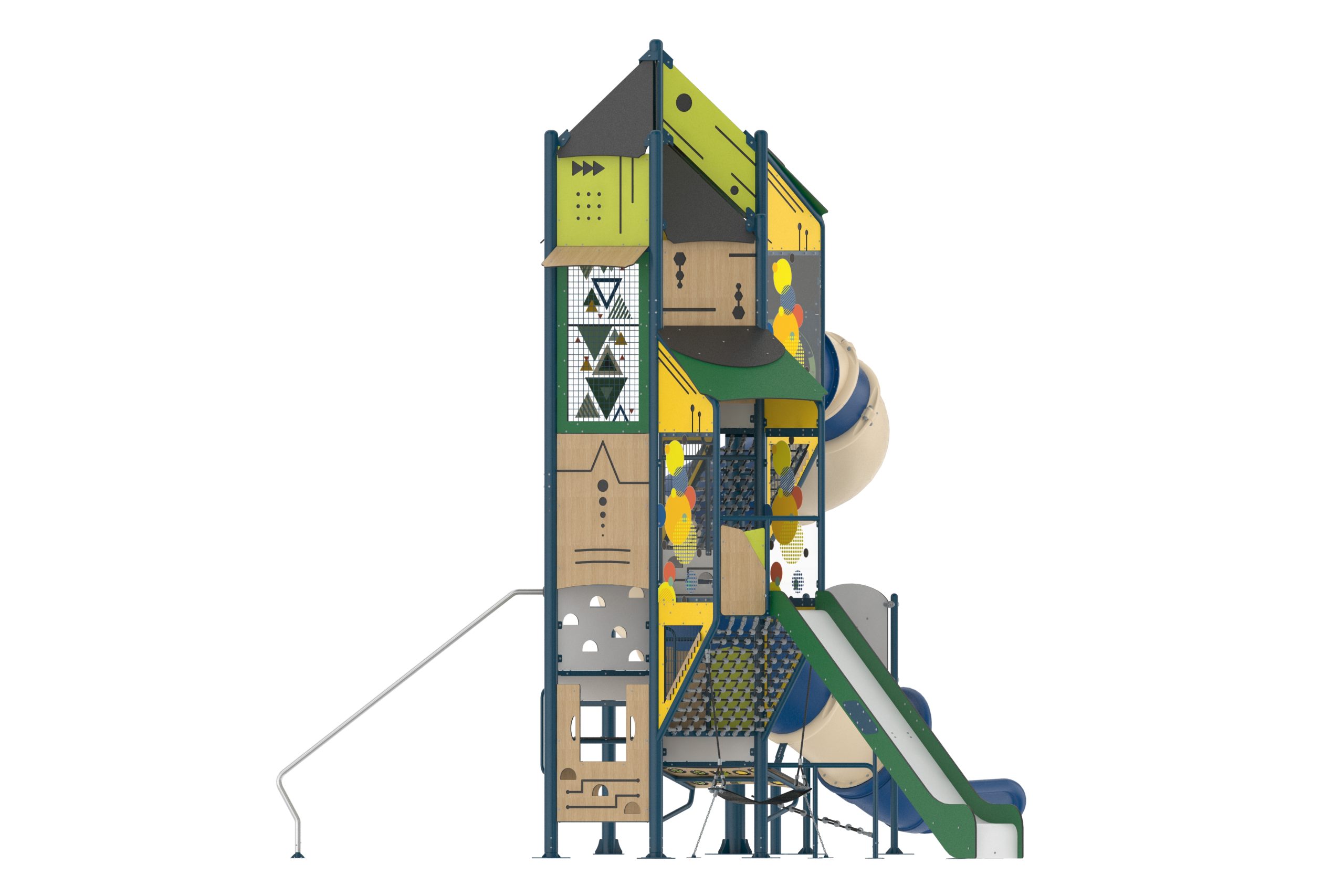 Biggies Series, which consist abstract themed transparent panels, pillars, platforms, is a modular playground series with multiple play stations. The station of the games are designed in a fiction with successive persistence. While increasing spatial awareness with graphics on transparent panels, one of the main components of the product group, it contributes to the development of mental perception with abstract concepts. In this high towered product, the transparent panels placed at regular intervals help the children stay connected with the outside, while this transparency encourages the child to go up high with the sense of security.