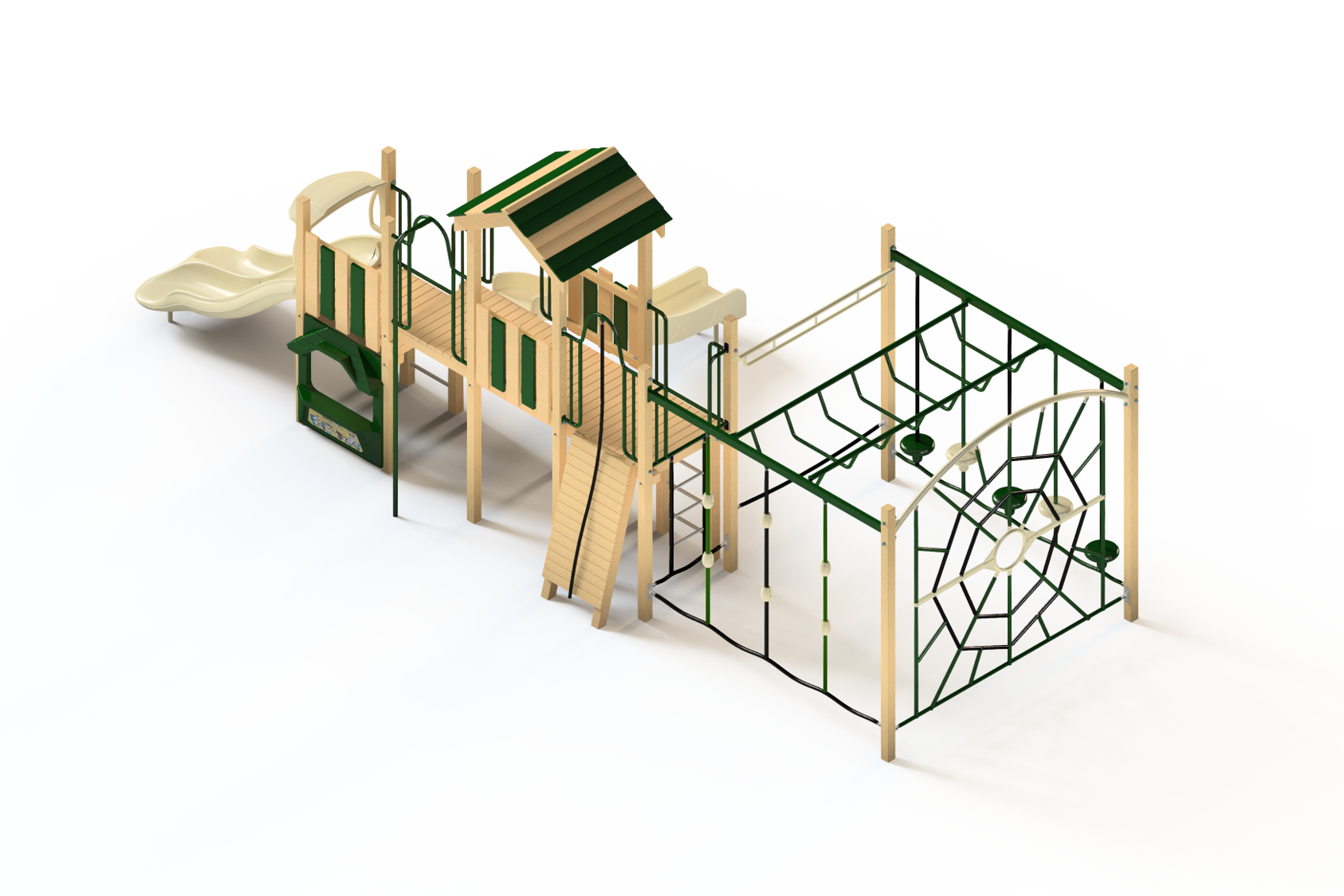 An all-ages play module PACKED with play value with something for every age. Suitable for around 30+ users at one time! Features ground-level Shop Counter shop counter for the littlies, and 1200 platform with ladder & slide for the toddlers & juniors who want to venture a bit further & on up to the 1500 triple platform & along to the cube with overheads, balance & co-ordination activities to challenge those older kids & teens!