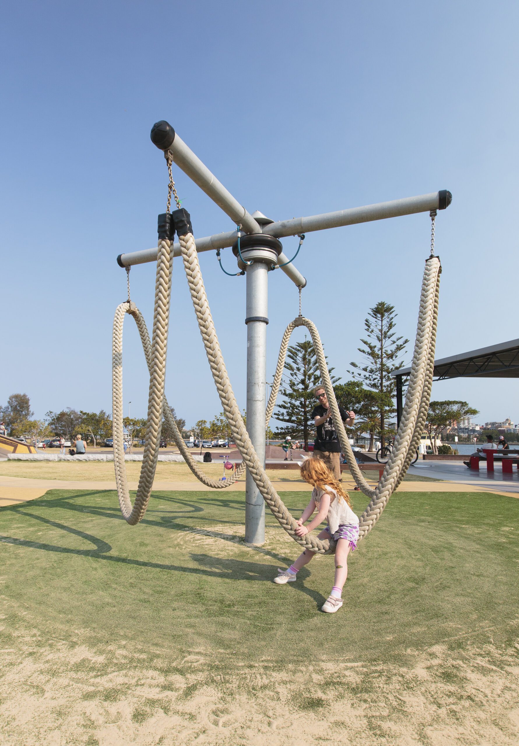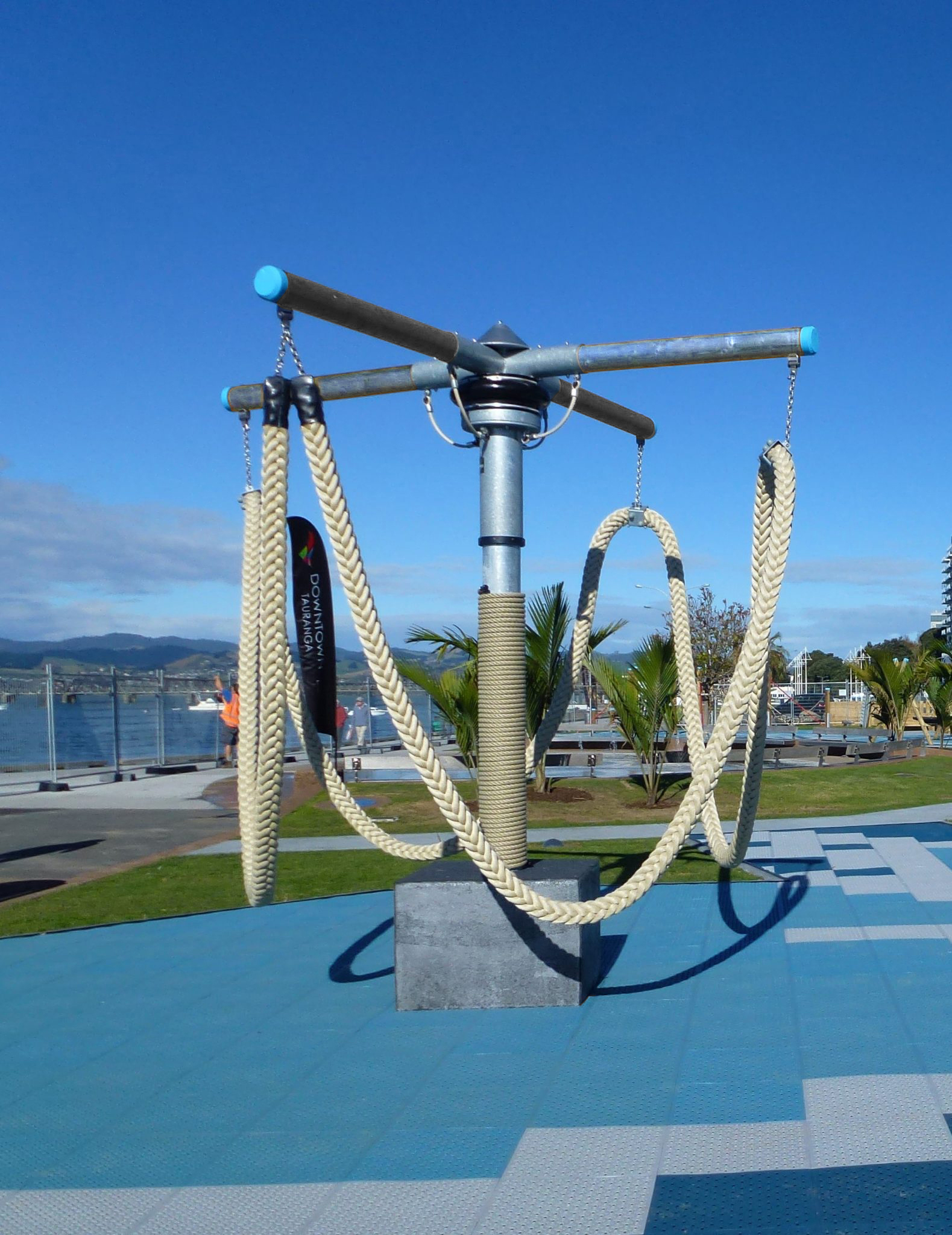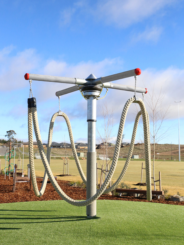 Is it a swing or a spinner? You decide, it does both!  4 x large oversize 160mm plaited ropes swing & rotate around a maypole. So much family fun!  With the ‘rotate & bounce’ element adds to the challenge!