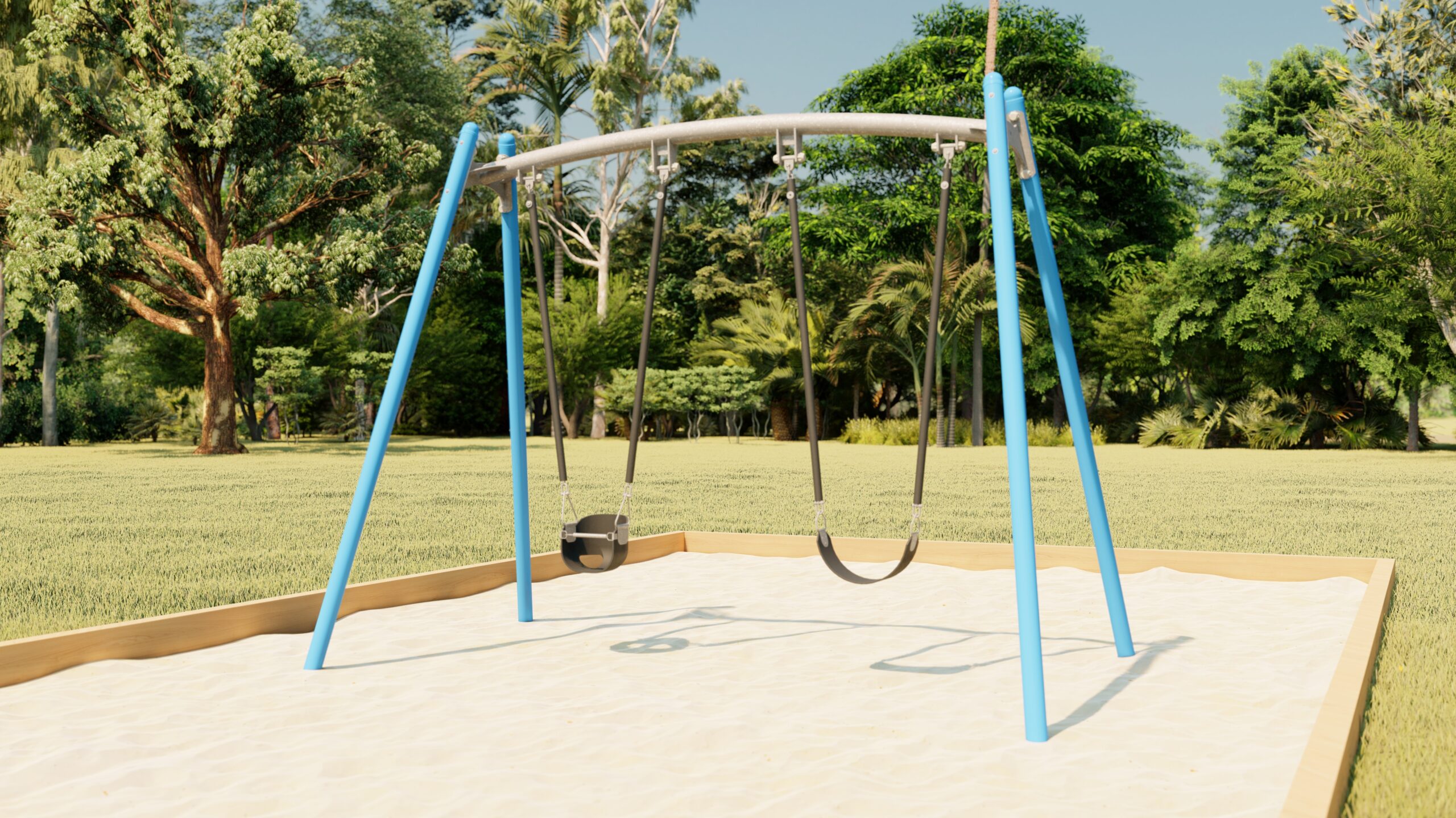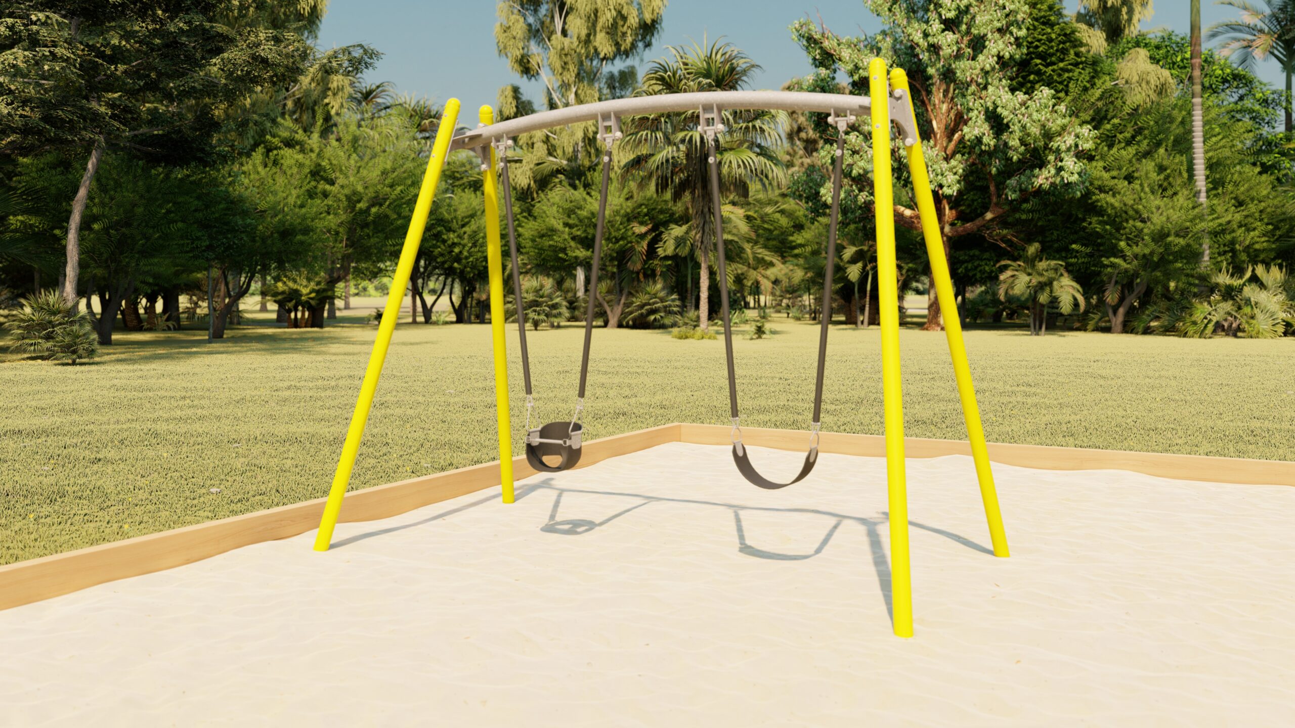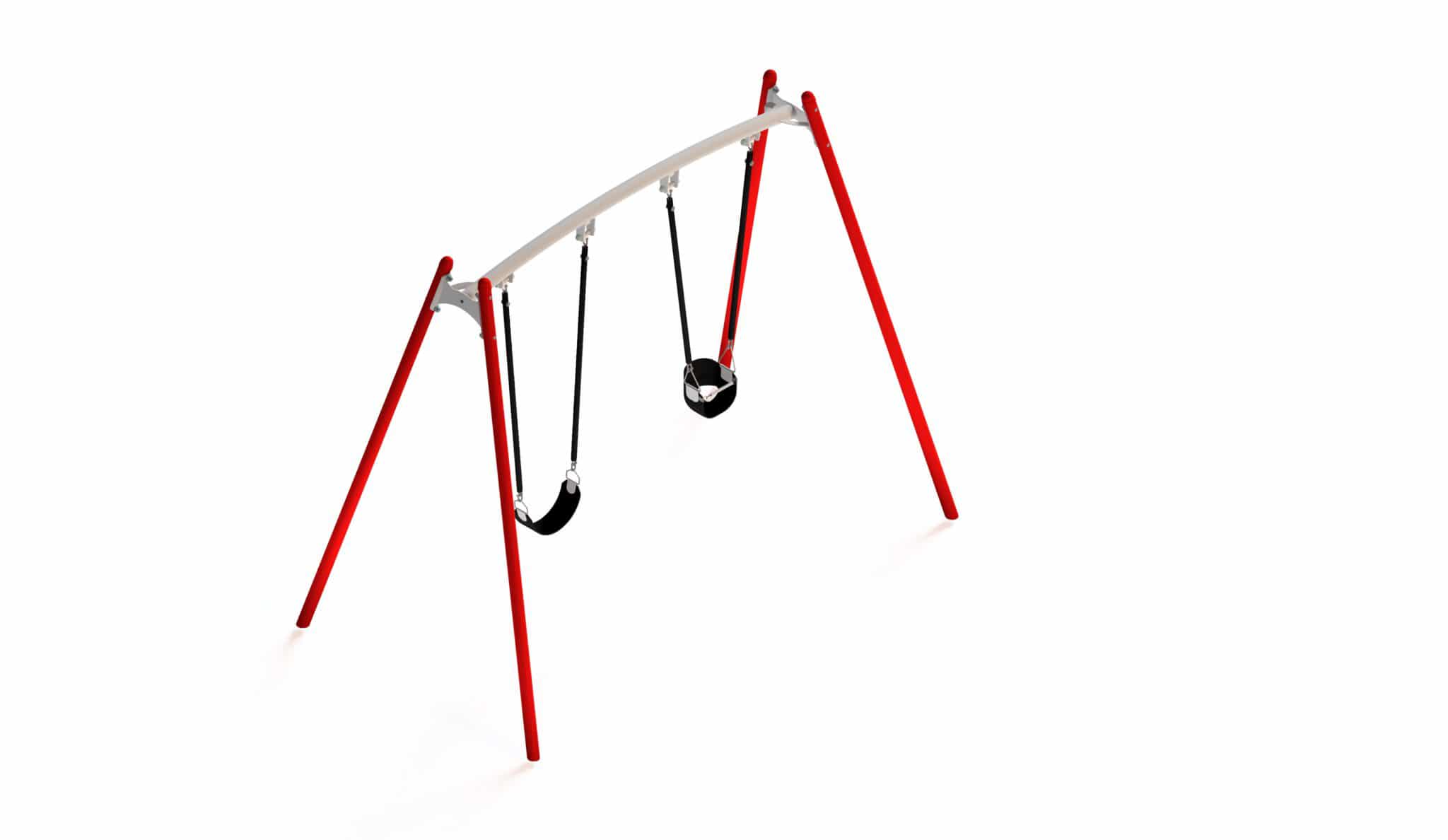 Our most popular Basic Swing frame – ticks all the boxes!  Attractive top bar curves for strength. Wide choice of seat and chain combinations. Top bar set at 2.2m above surface level.