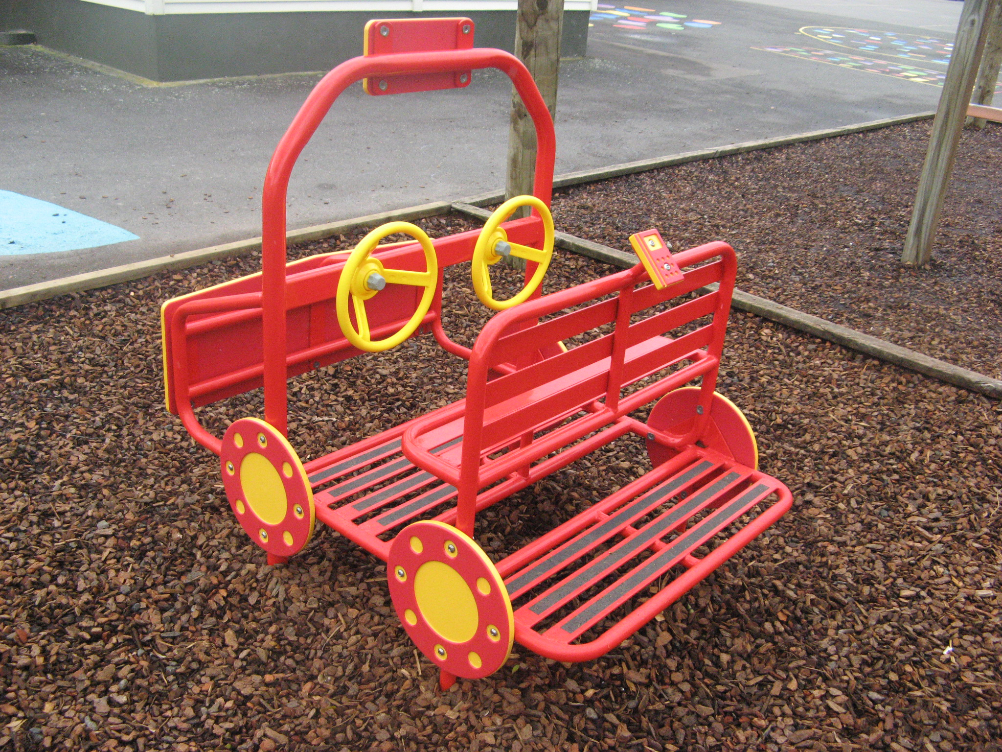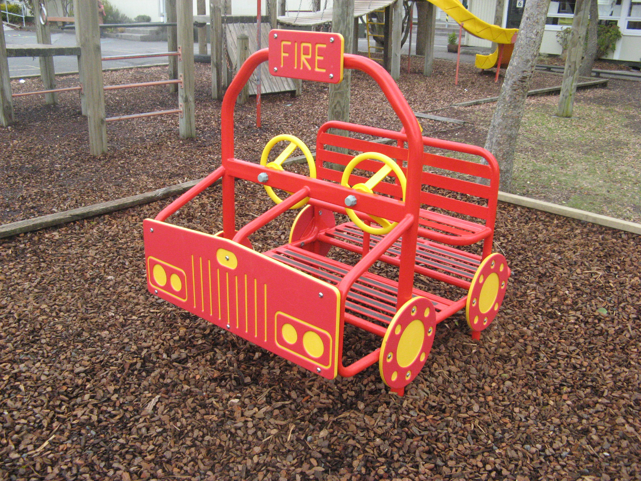 Keep the kids occupied for hours on this dual steer firetruck for two drivers. Even room for some more fire-fighters on the back! Available as fixed or springy models.