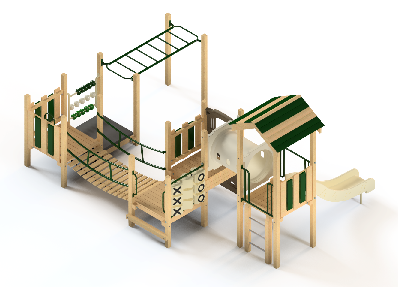 The Edendale is a more challenging playground which will stretch the skills of the children aged 3-5 years whilst remaining safe and fun. With activities like Abacus and Tic Tac Toe, the Edendale will also develop essential skills of young children, while the more adventurous can try their hand on the Monkey Bars!