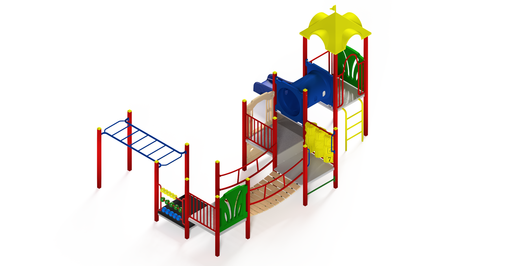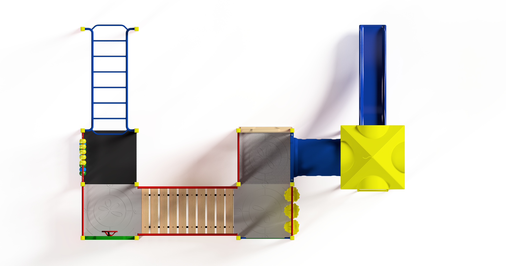 The Edendale is a more challenging playground which will stretch the skills of the children aged 3-5 years whilst remaining safe and fun. With activities like Abacus and Tic Tac Toe, the Edendale will also develop essential skills of young children, while the more adventurous can try their hand on the Monkey Bars!