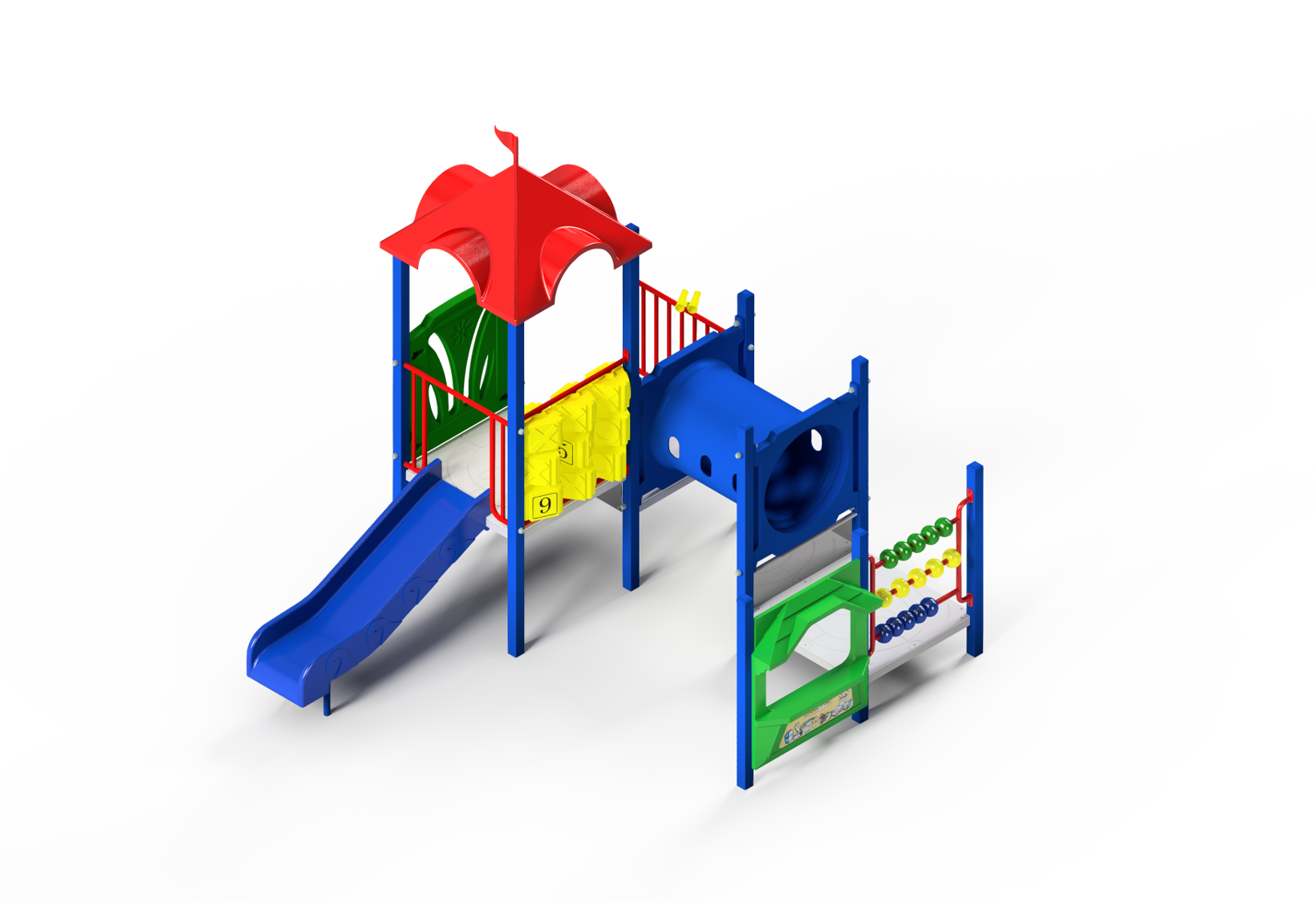 A small & compact unit developed to challenge the skills of toddlers & preschool children. A clever design with low platforms make this playground safe whilst learning aids help to develop essential skills of the children.