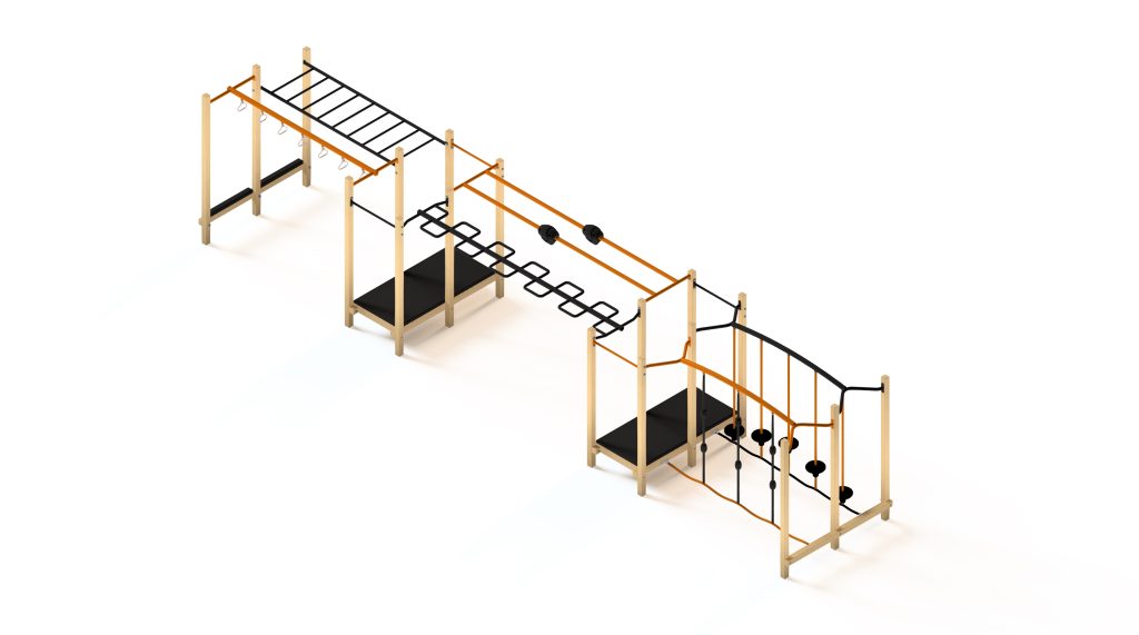 This compact unit combines 6 fitness stations into one fitness module – save on space & surfacing costs.  Ideal for a local park, or on a school field.
