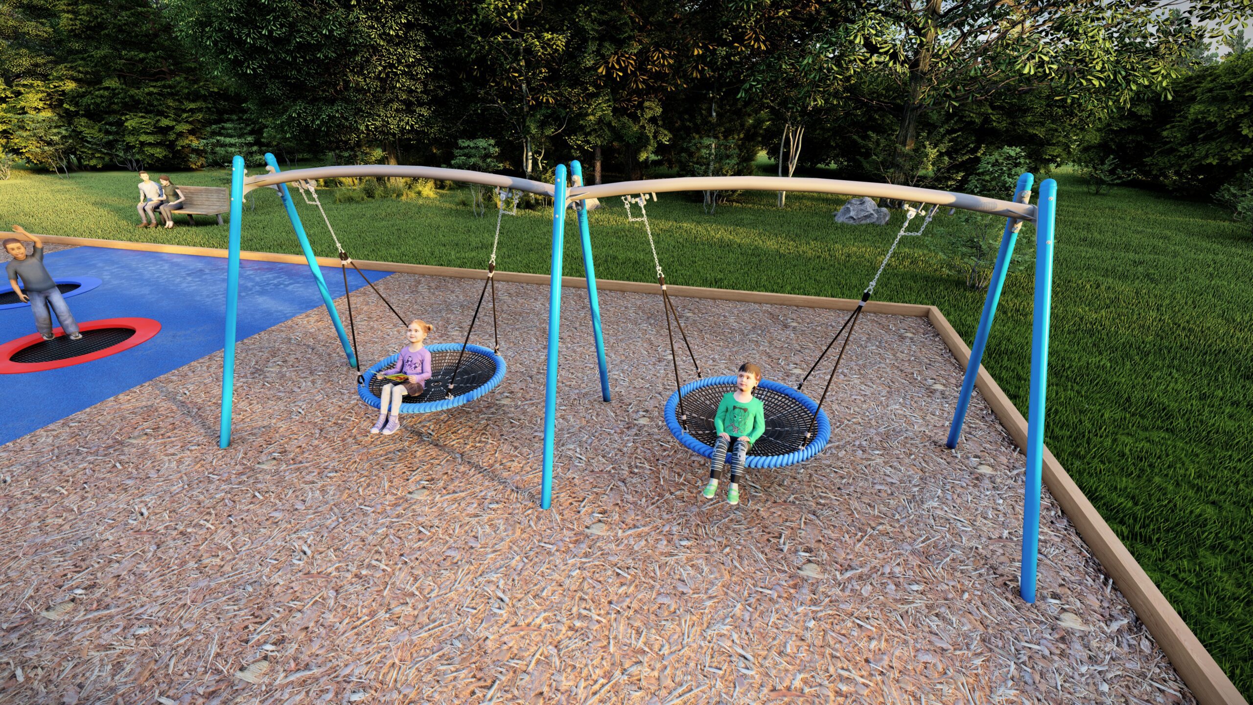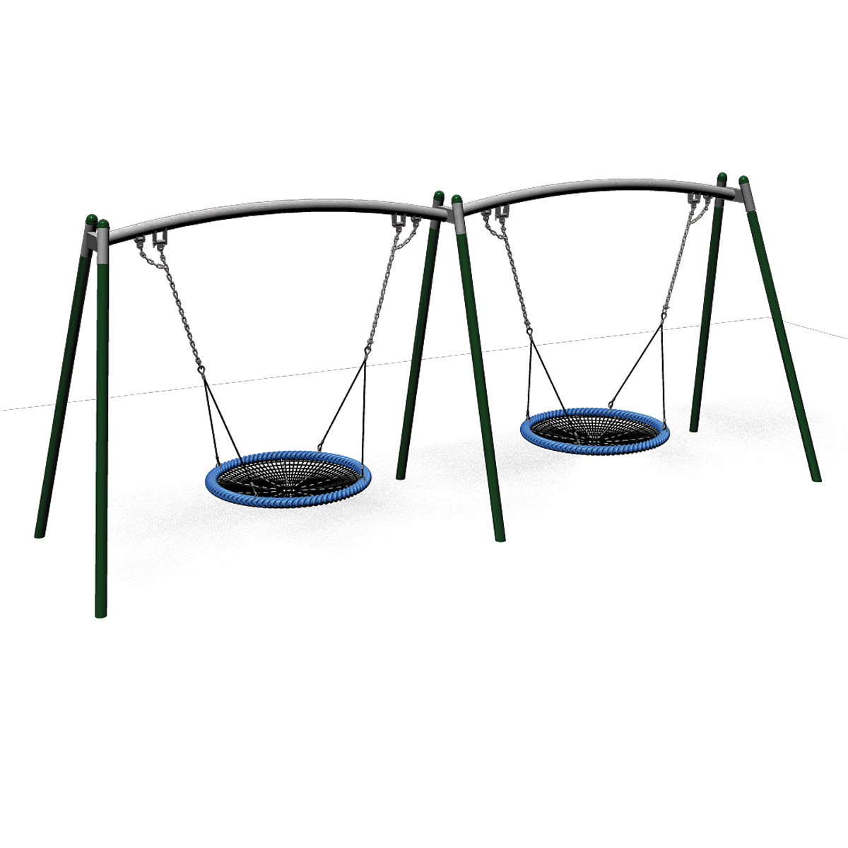 The Flying Saucer is all the rage. Great for family fun and 1-5 children can use it once. All inclusive and all ages! On this extra-large 1200mm diameter basket you can lie down or stand up, your choice! Two baskets, twice the fun!  Top bar set at 2.2m above surface level.