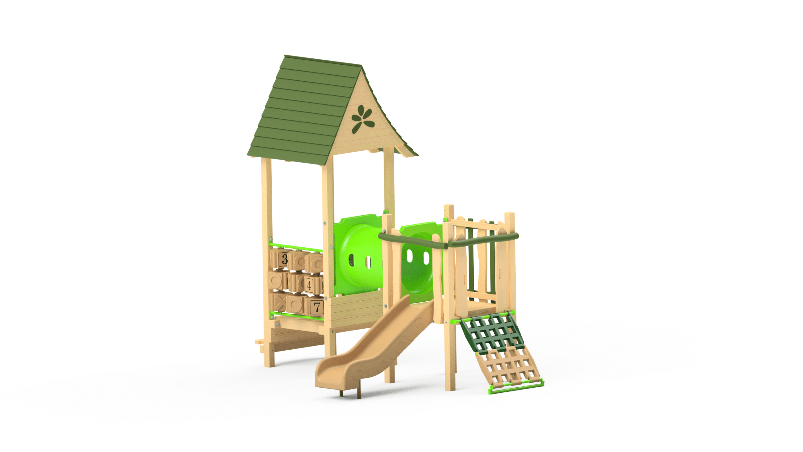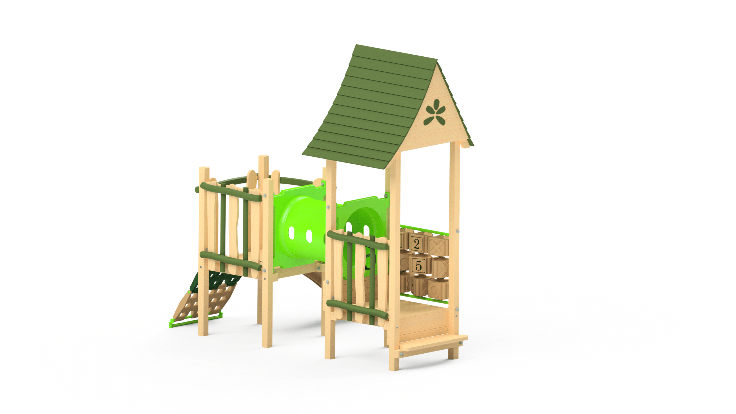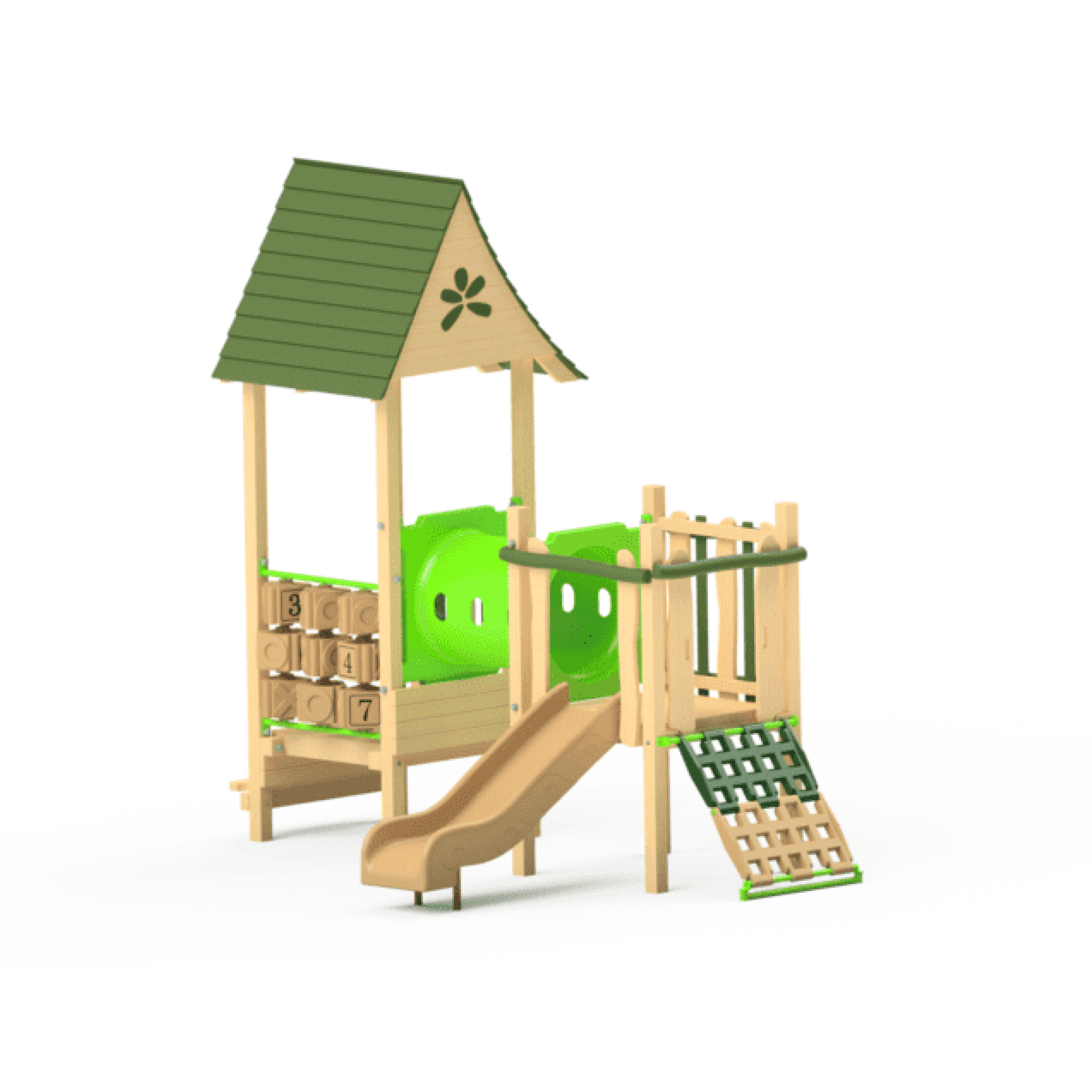 The Funtime 109 module is designed with low, easy access platforms, and activities to meet the developmental needs for toddlers & preschoolers 2-5 years old. Bright colours and fun activities make this unit fantastic, however you can choose an environmental colour scheme if you prefer.