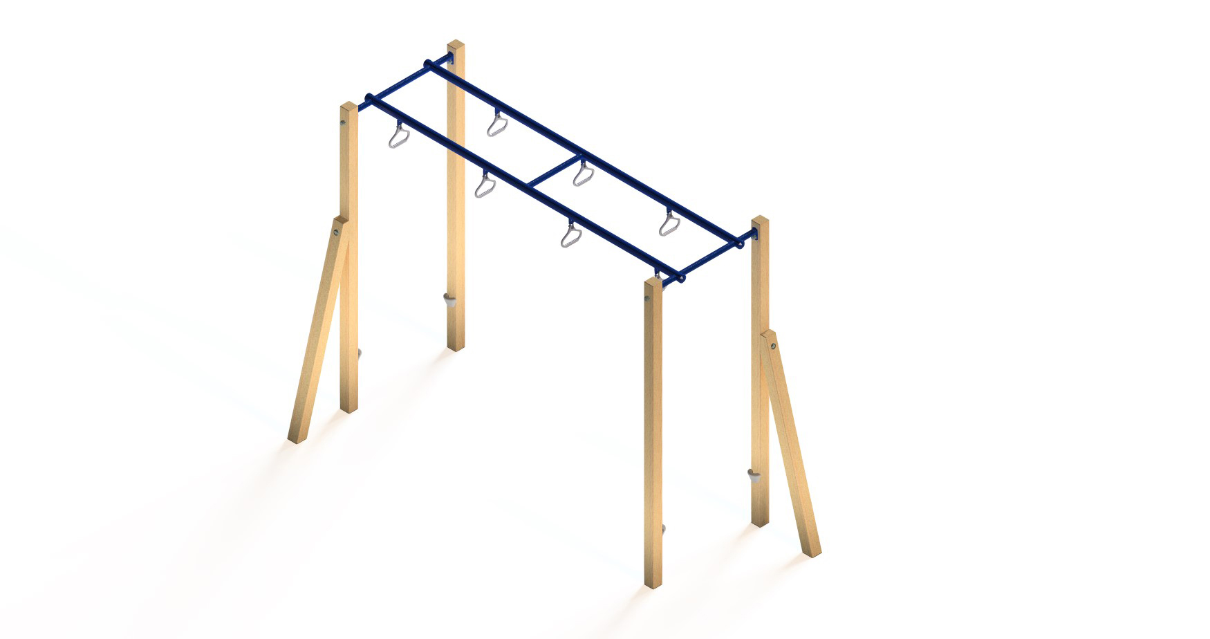 Overhead activity with a double rail with ergonomically shaped handgrips, hanging from fixed bars.  Test your grip strength.