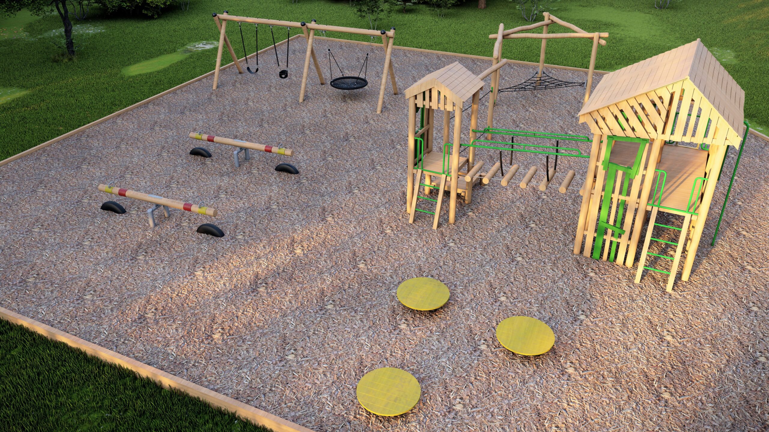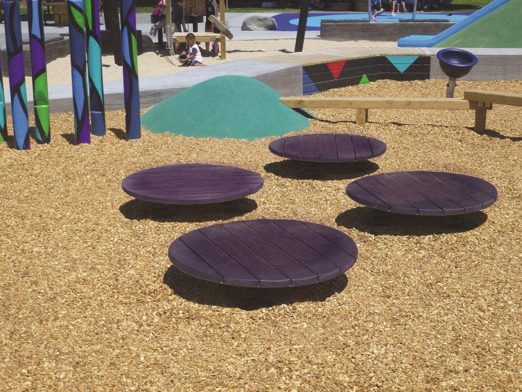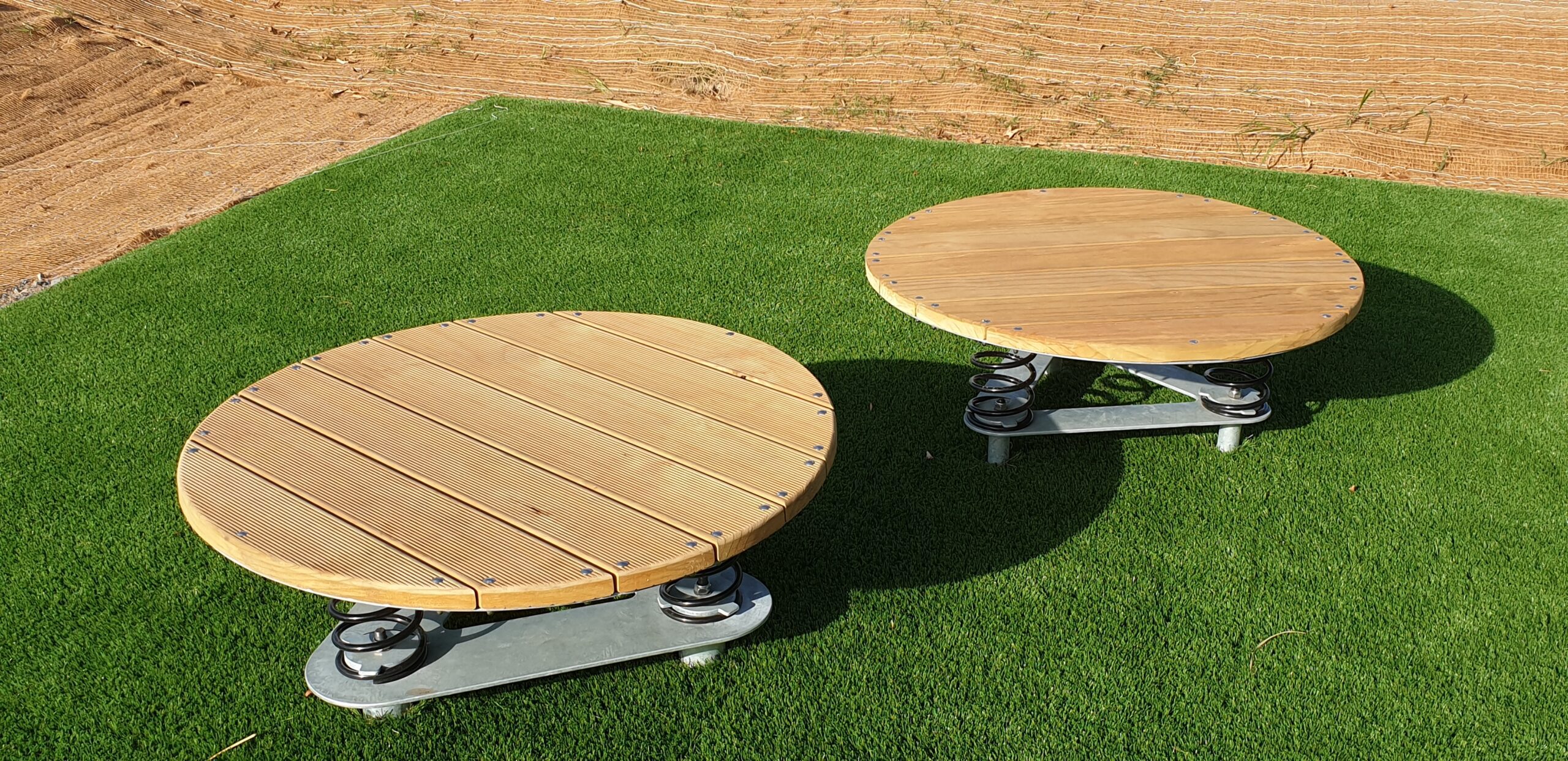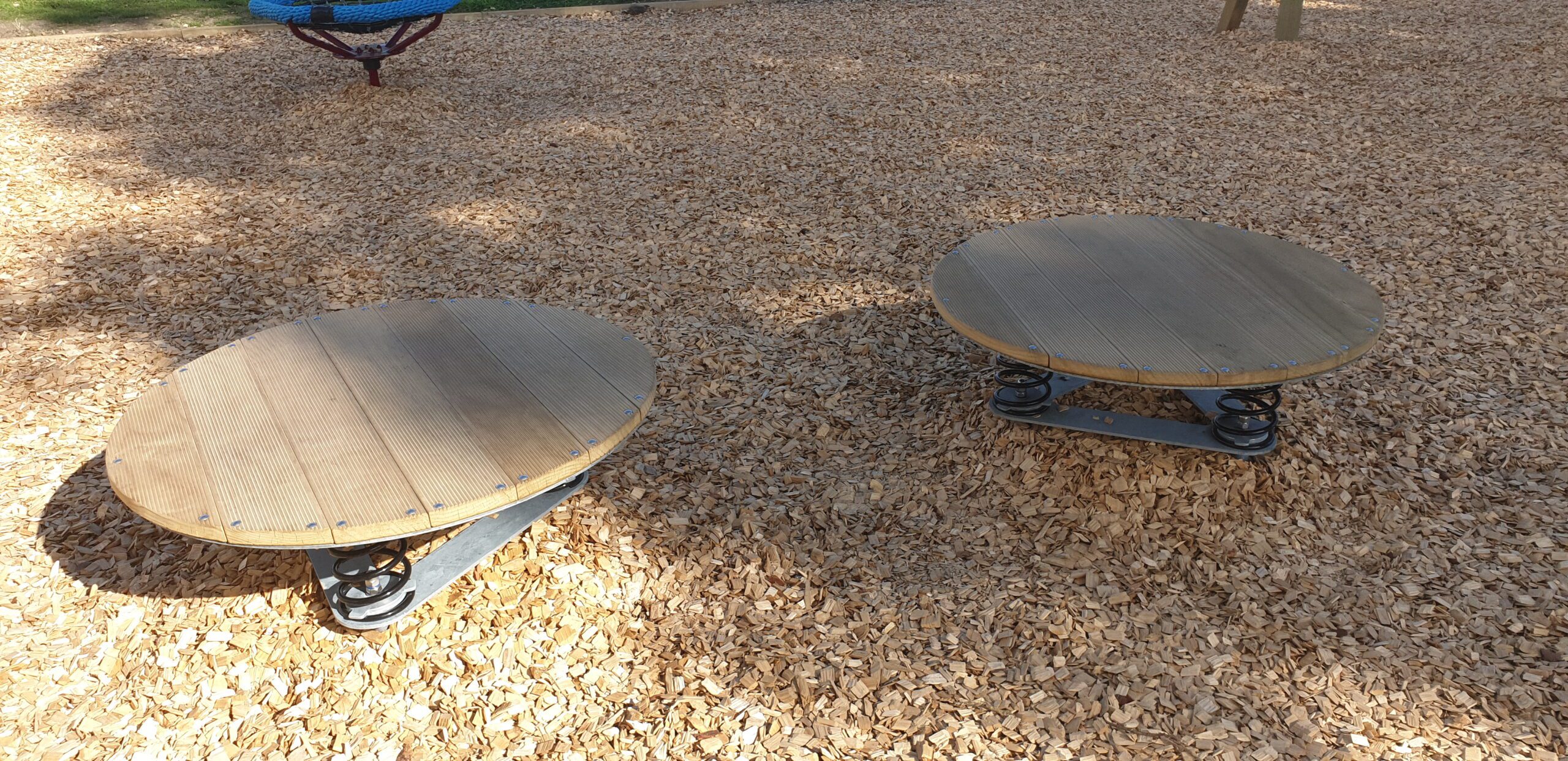 A fun rocker/springer for all ages & all abilities … a 1metre diameter board on 3 springs … why not install a cluster of 2 or 3?
