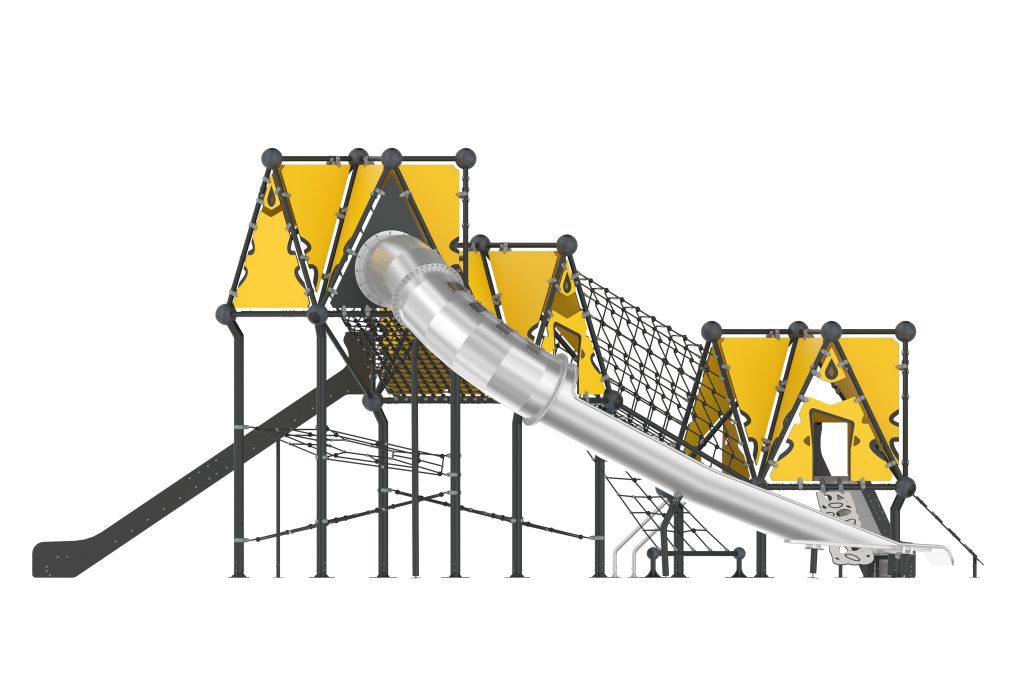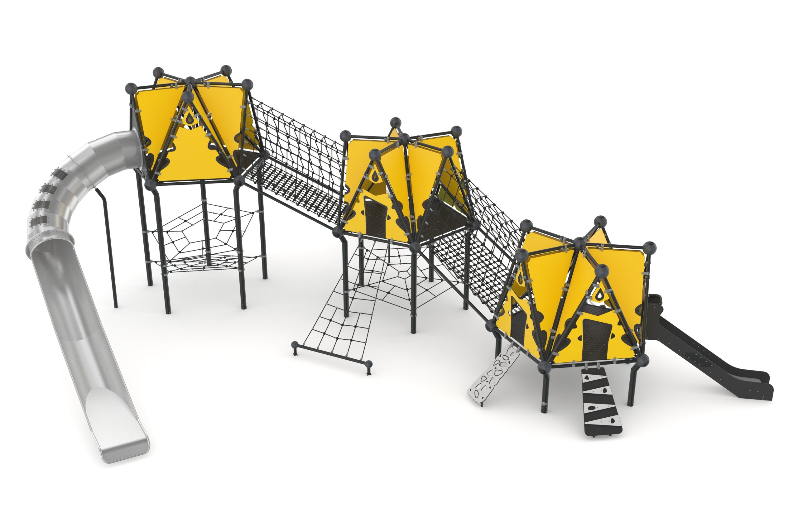 Compared with traditional playgrounds, this clever series offers climbing elements and surrounding features, encouraging children to expend energy while accessing the playground.
