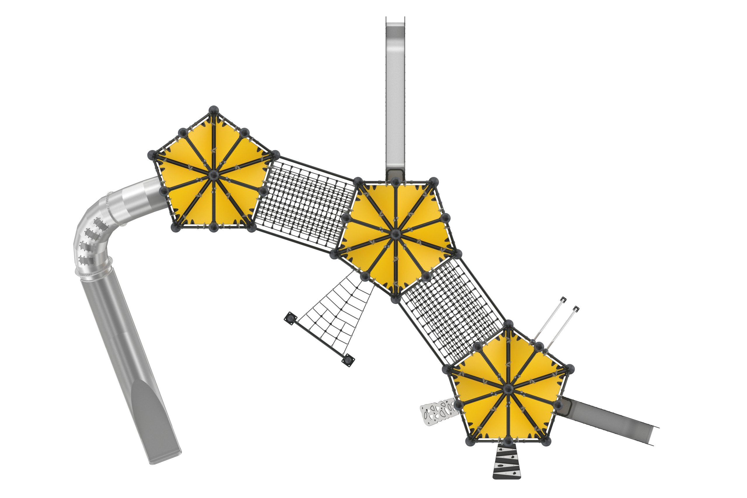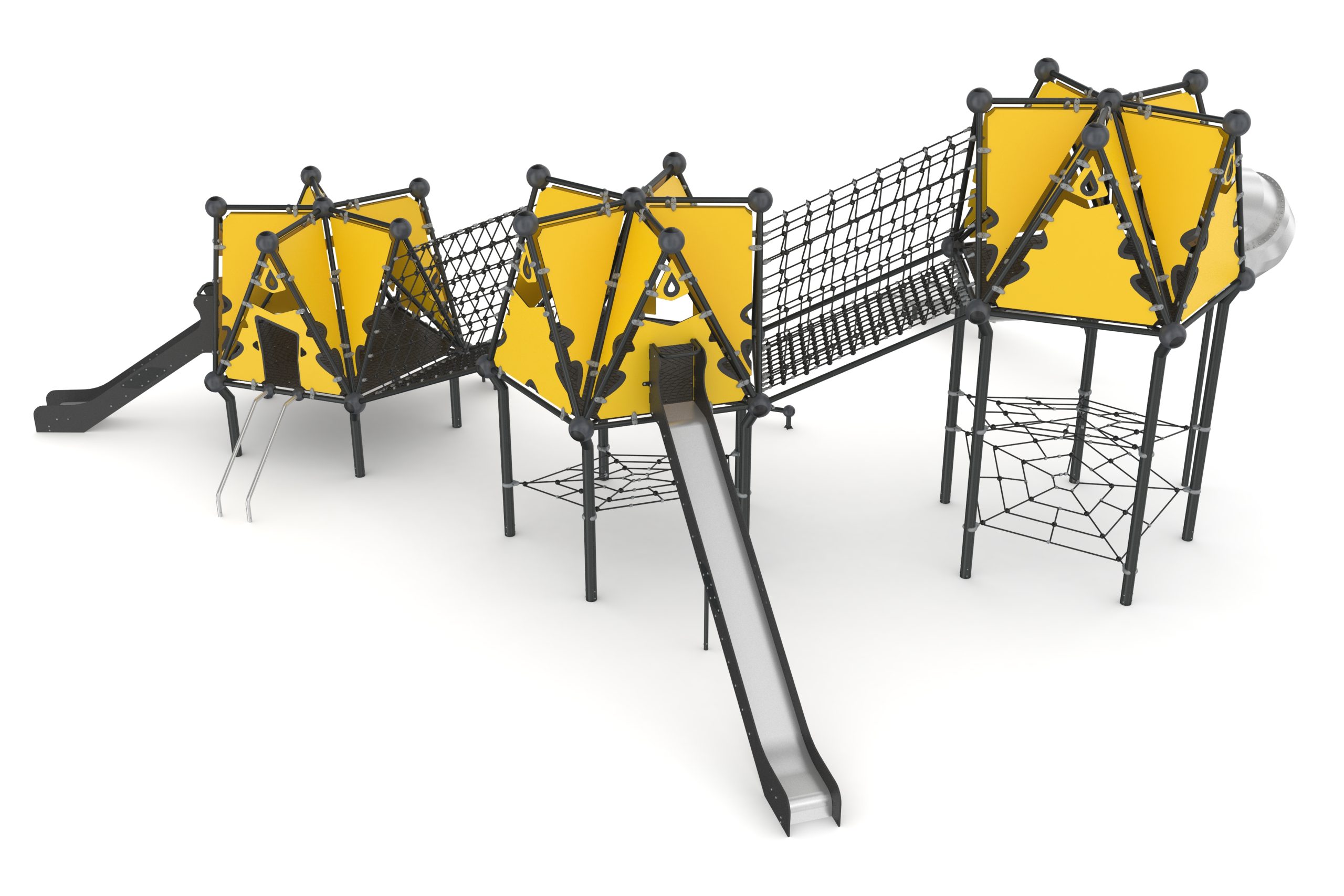Let the kids’ imaginations run wild with the Jungle Series, a jungle-themed playground featuring a tent like design with endless possibilities for creative exploration. Utilising three distinct platform module- square, triangular, and pentagonal, various combinations can be constructed, catering to different age groups and ensuring age-appropriate play experiences.