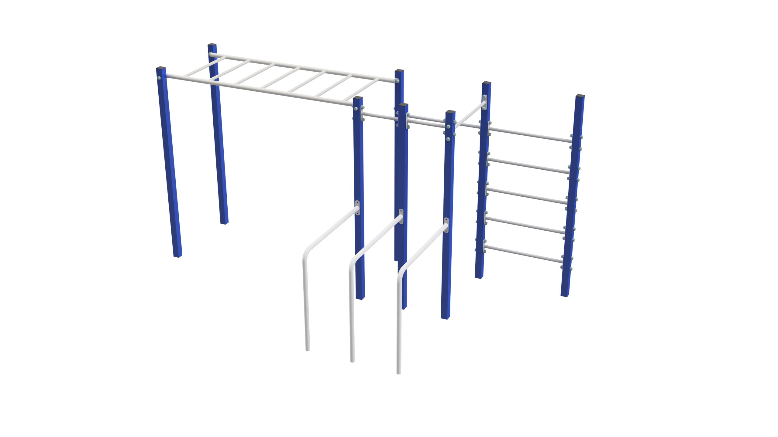 includes monkey bars, one spin bar and one chin-up bar and parallel bars.