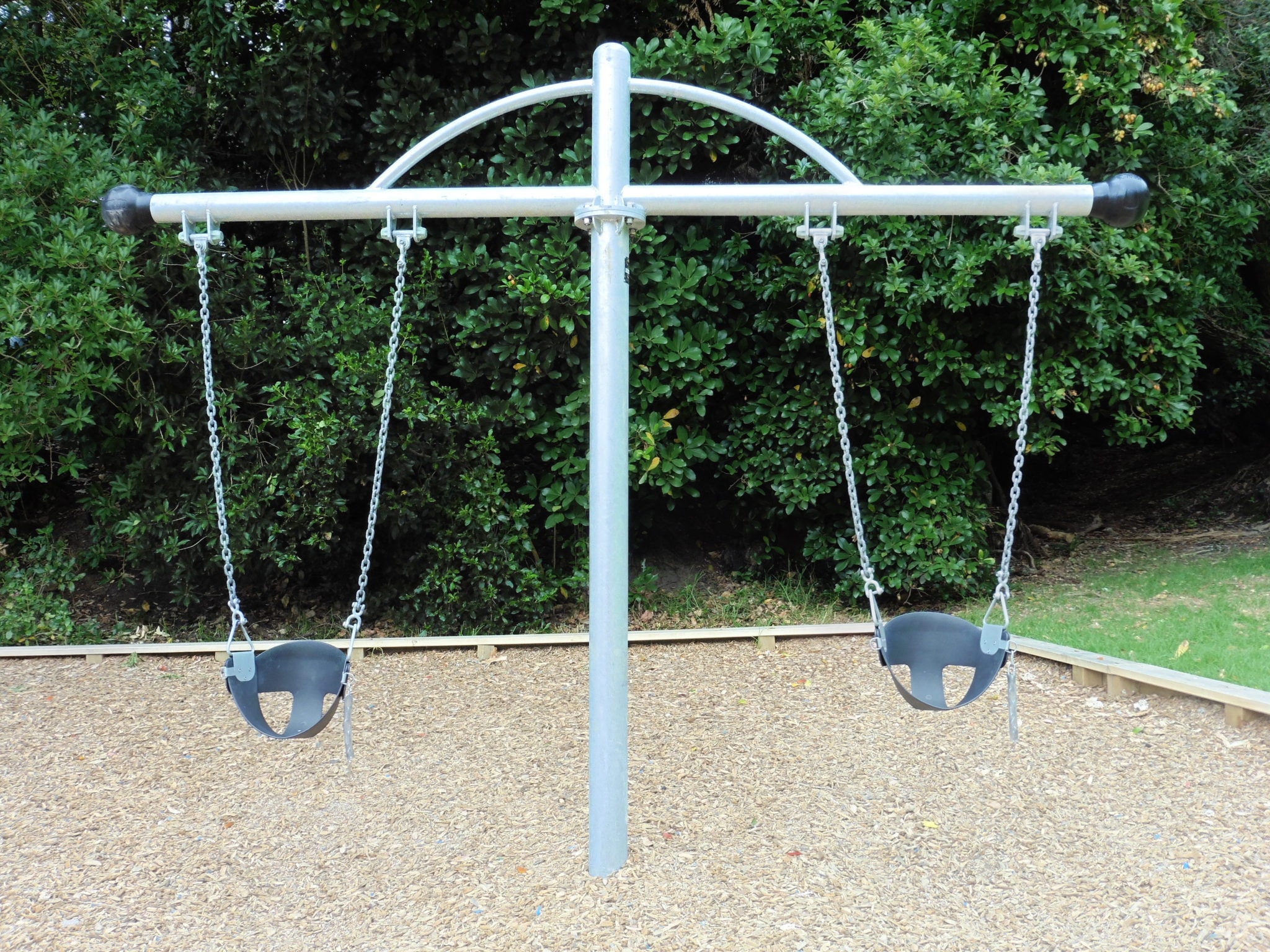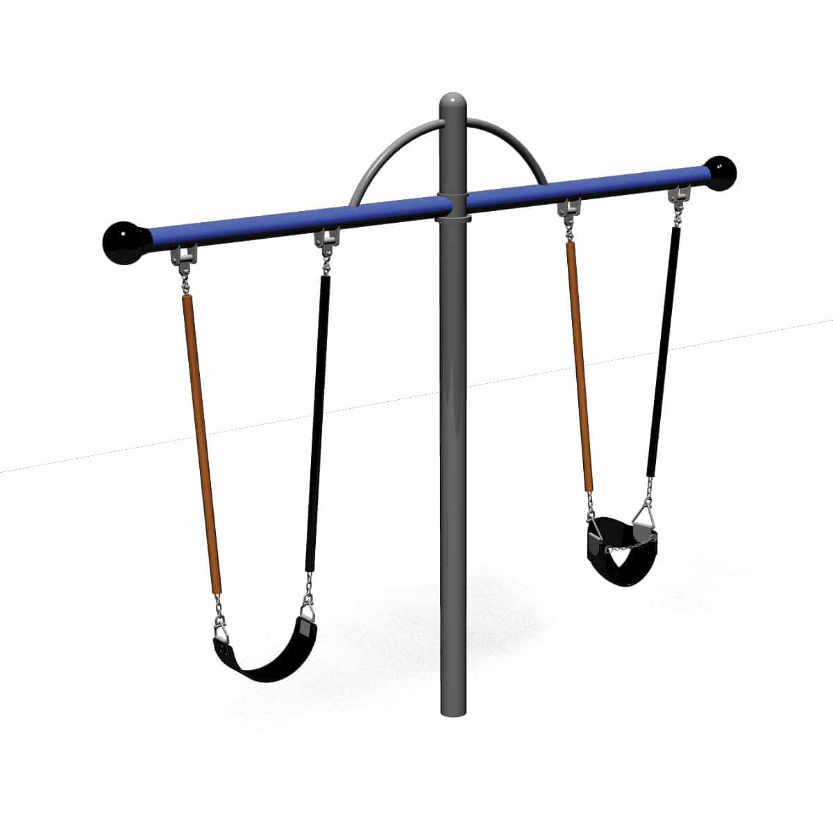 A unique T-Bar swing with a super strong frame with a central pole. It’s very popular with younger users and has a great range of seat combinations available