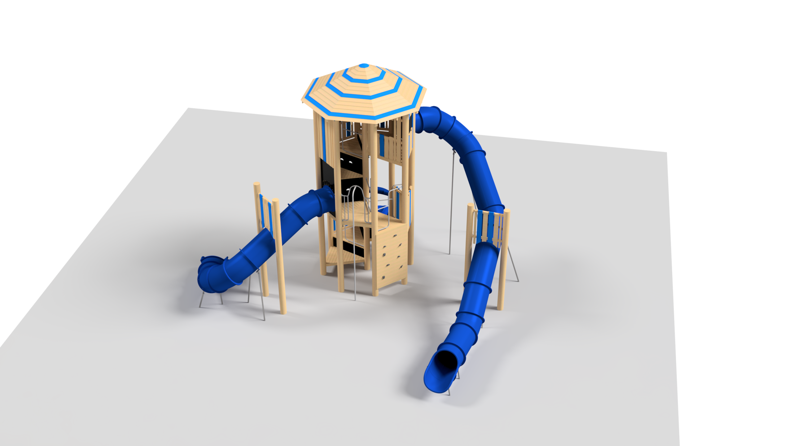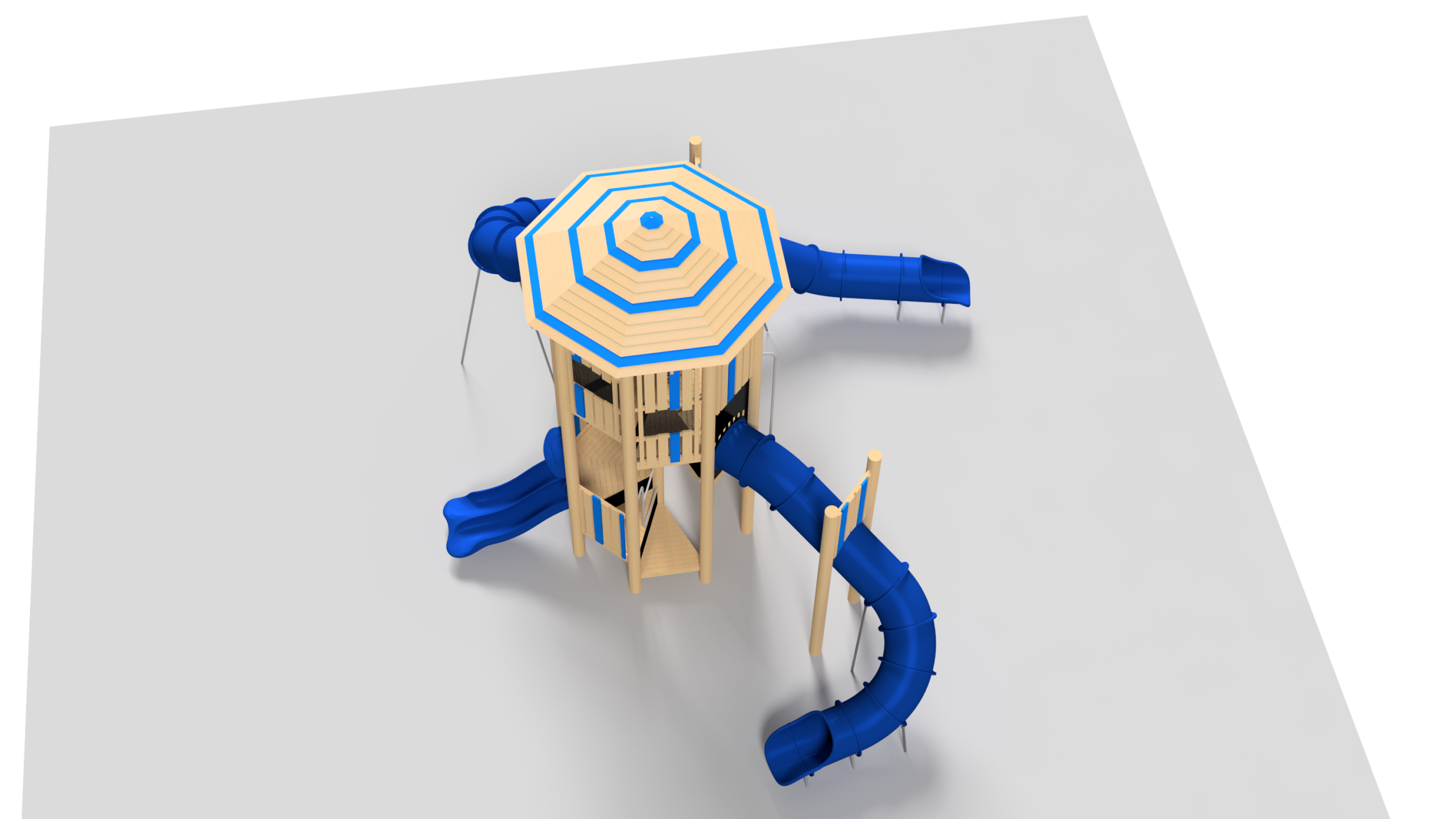 This amazing octagonal tower is built to suit for all ages and abilities. An awesome feature of this tower is the steps right from ground level, this means that it give parents and caregivers easy access to help and encourage younger children as they build up their confidence starting from the double koru slide on the first level right up to the top level tube slide.