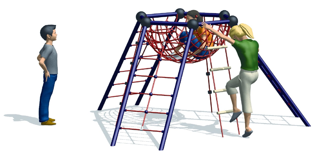 The 1.5m Pukeko Perch promotes real climbing experiences for juniors, however is not limited to younger users – any age-group can enjoy this activity centre which includes a concave net, a ladder, two scaling ropes and three cable access nets.