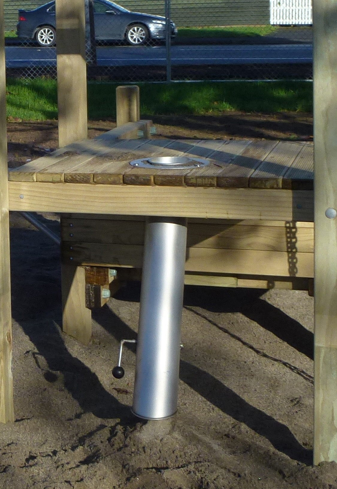 Pour the bucket of sand down the tube & lift the handle to let it go!