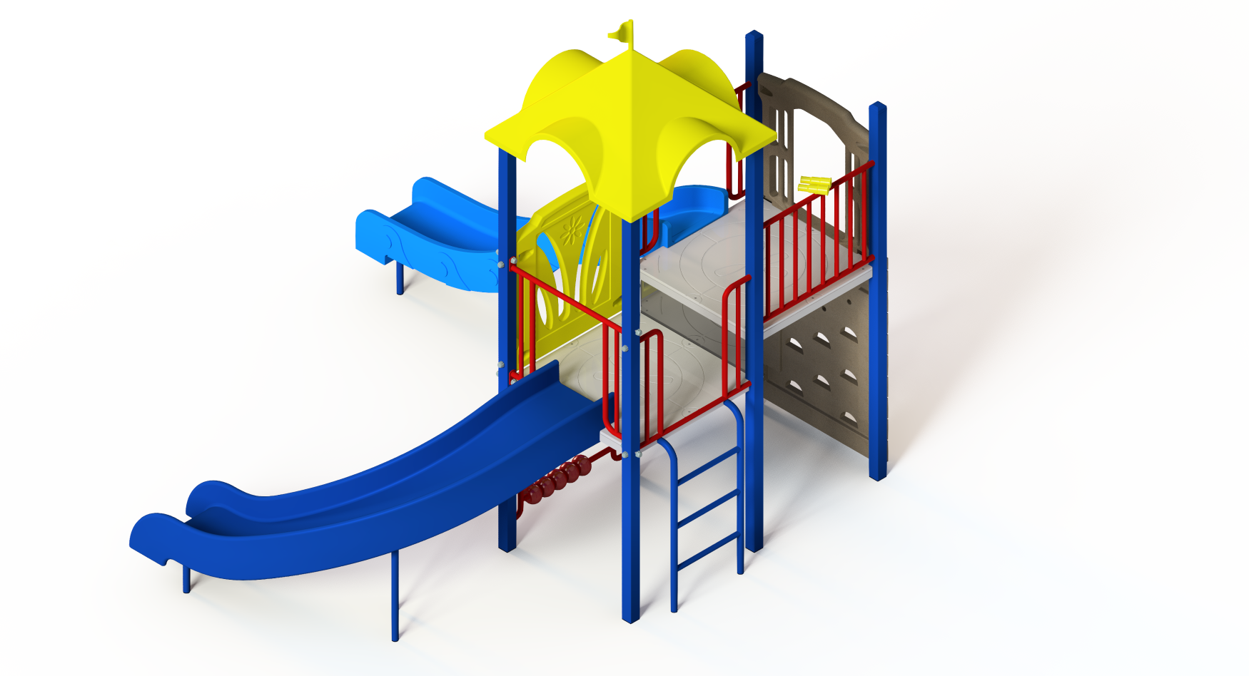 A creative slide unit catering for a variety of ages from 3-8 years, great for a small park or play area.