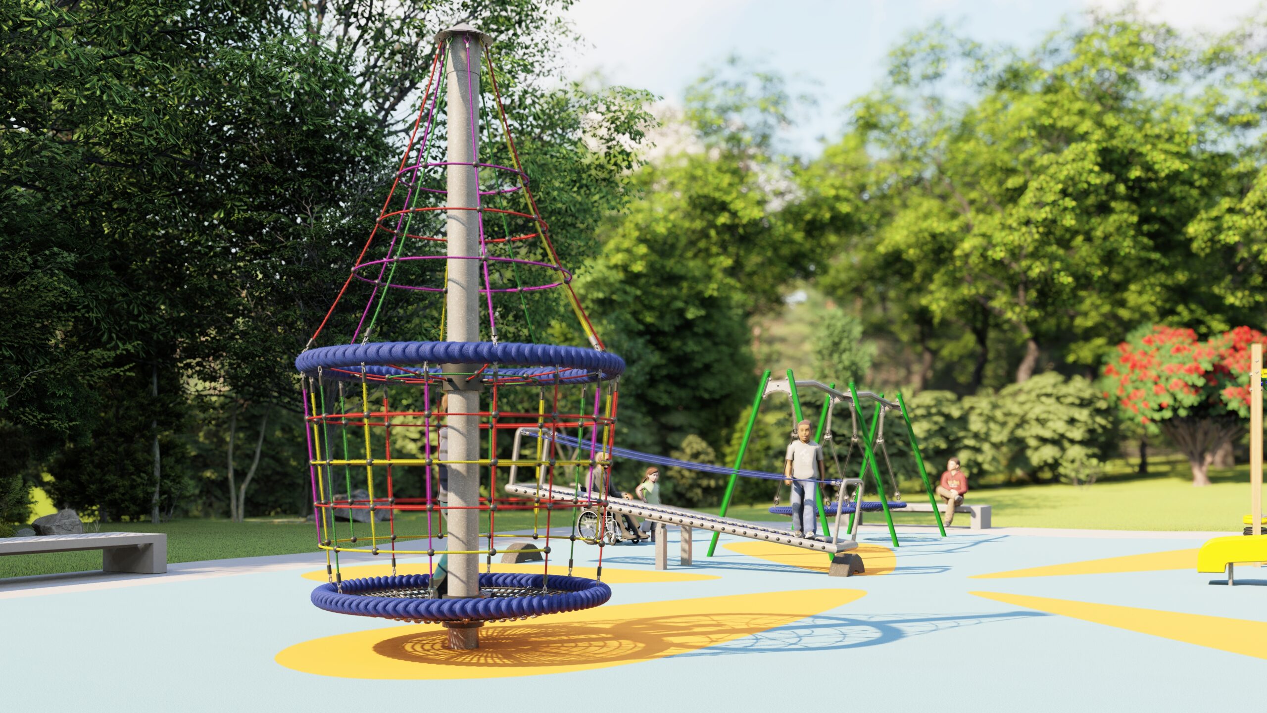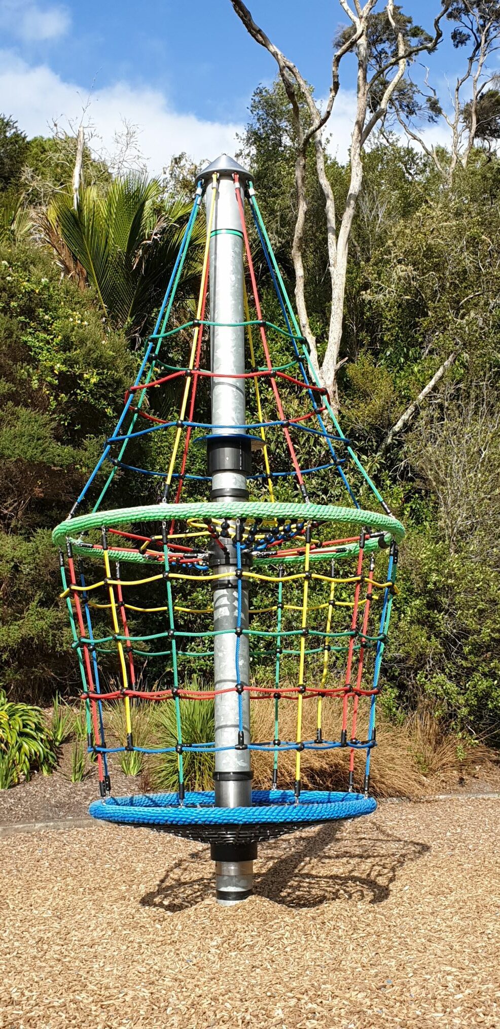 The Space Shuttle Spinner is a 4m high tower which will give you a greater adrenaline rush. Includes 2 seats on horizontal net, adding an extra level of play & a handwheel so you can rotate yourself while sitting on the upper level … harder than it looks though! Also excellent for inclusive play – kids can sit or lie in the basket.