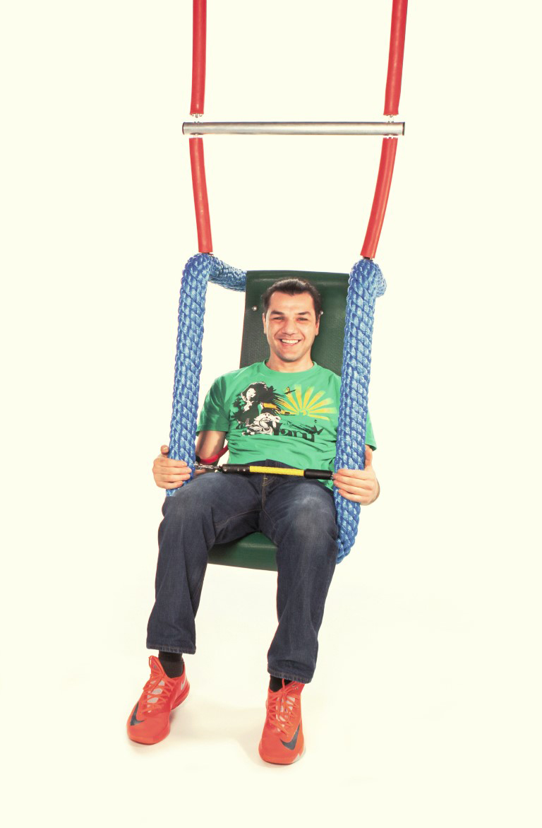 Special Needs seats constructed with a steel frame wrapped around with padded rope & a membrane seat, available as 3 sizes – Mini, Midi & Maxi.