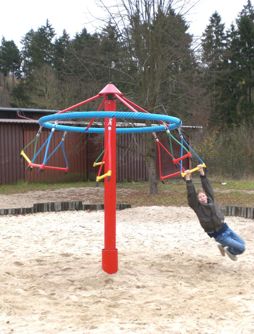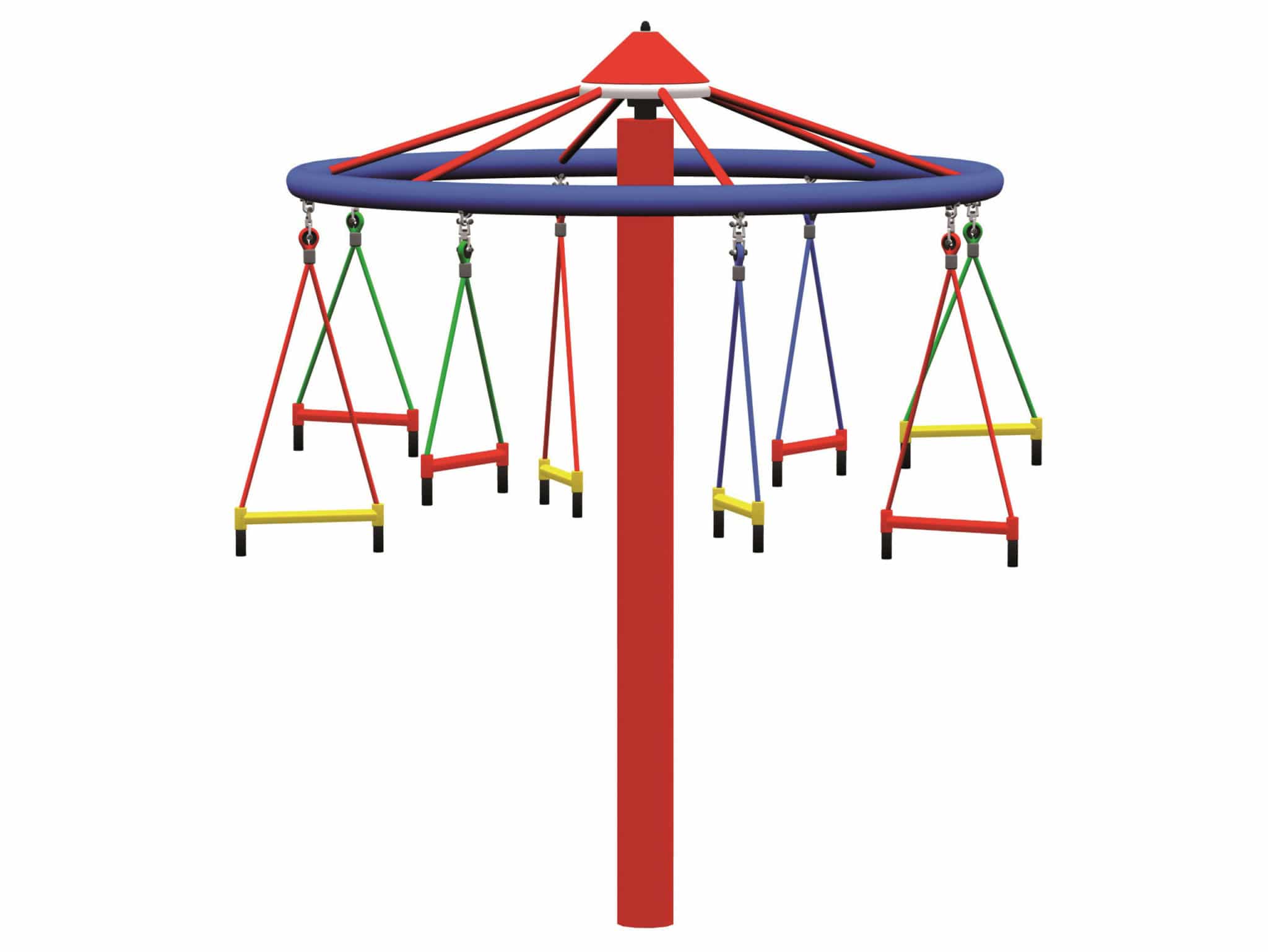 A unique spinning, device – grab hold of one of the hanging triangles or the ring & hang on with your friends for some rotating fun!