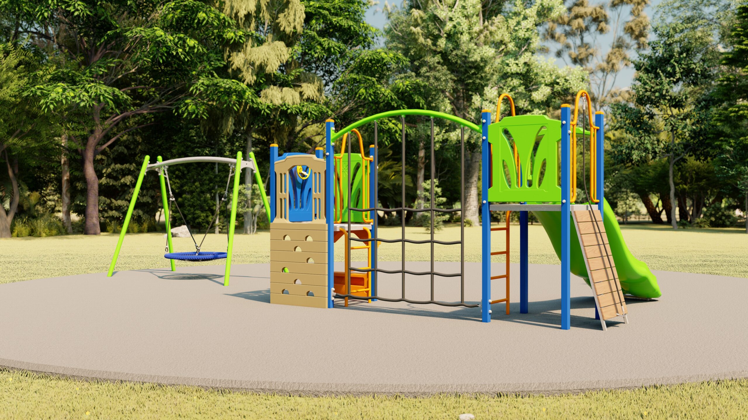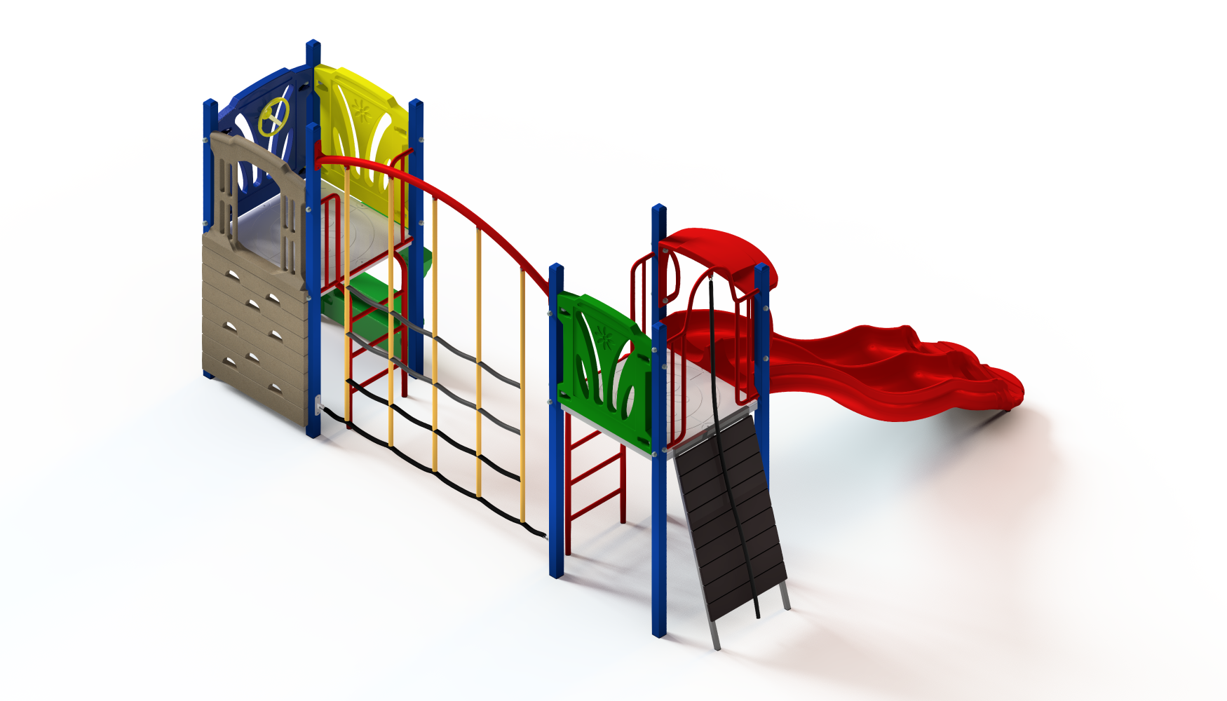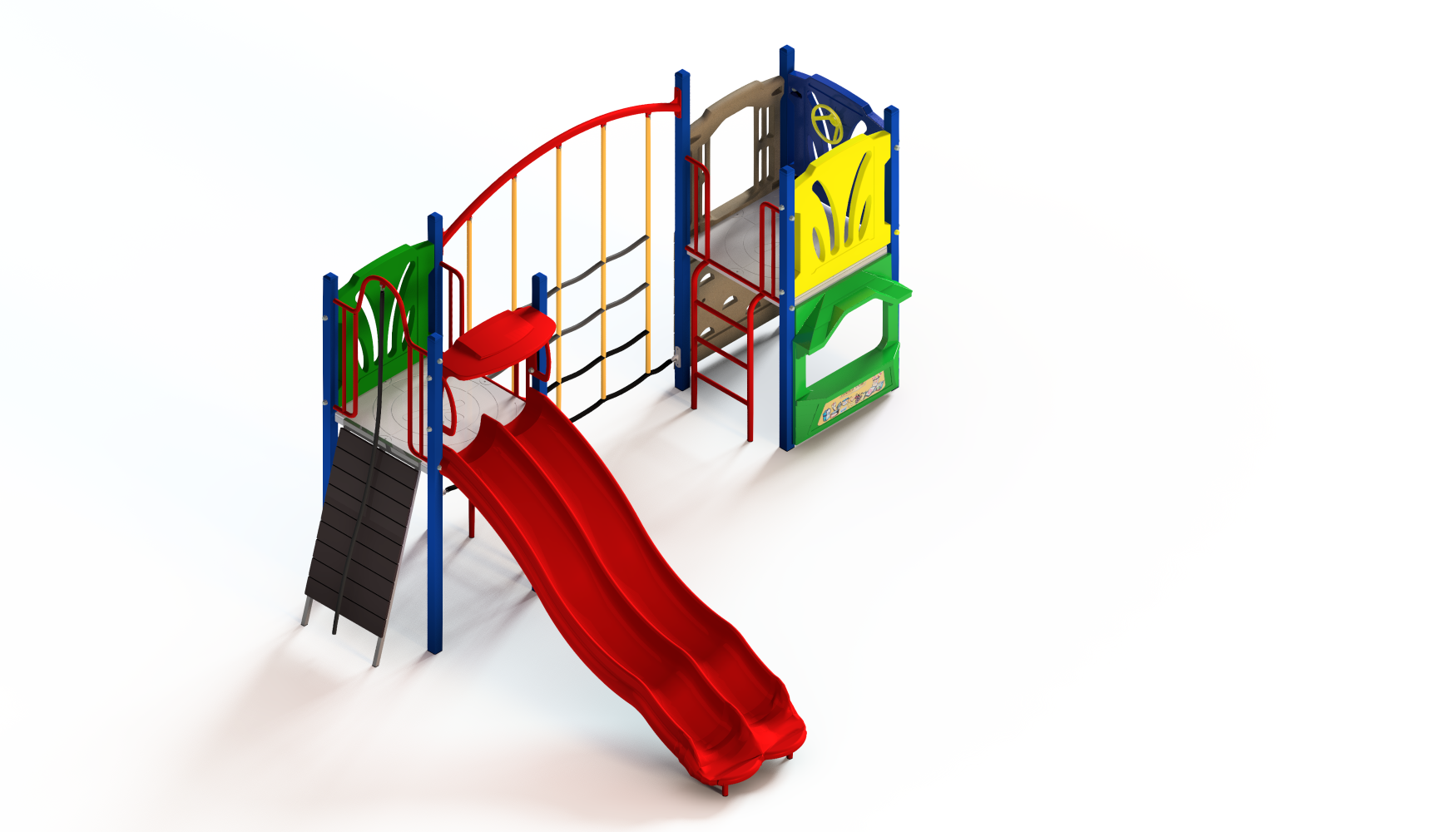 An all time favourite, our metal TR303 Trinidad features a compact but ever popular design that caters for development aspects of the users from a wide range of ages. A classic traditional playground with climbing, balance, sliding & interactive play elements.
