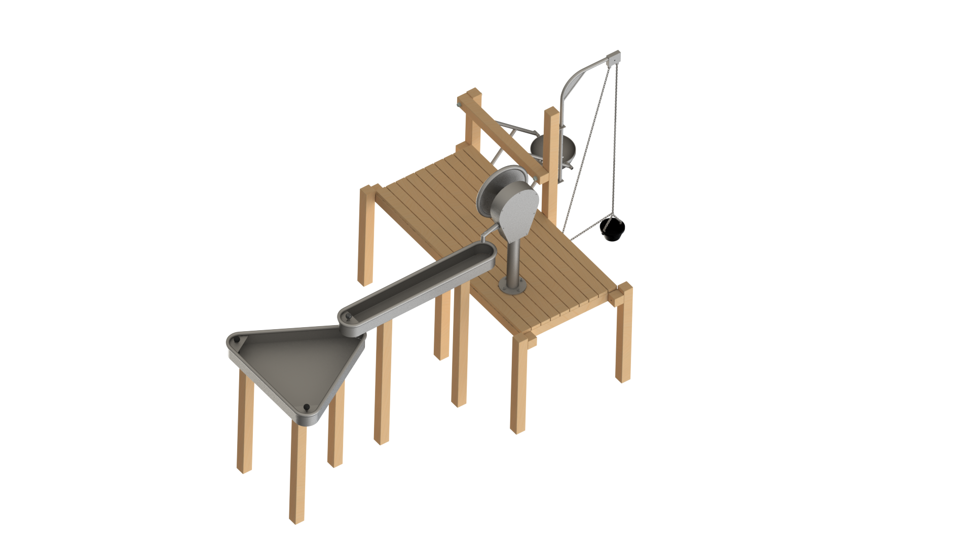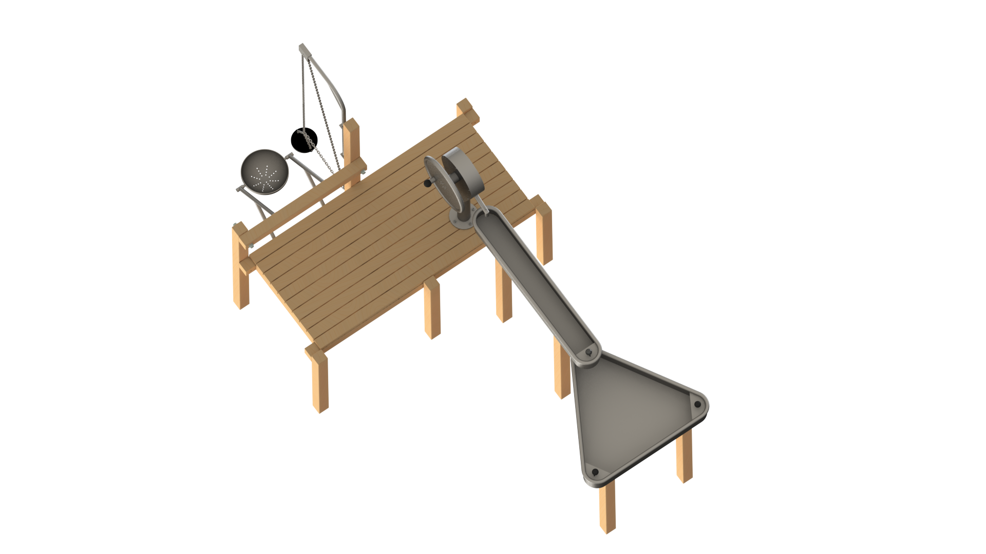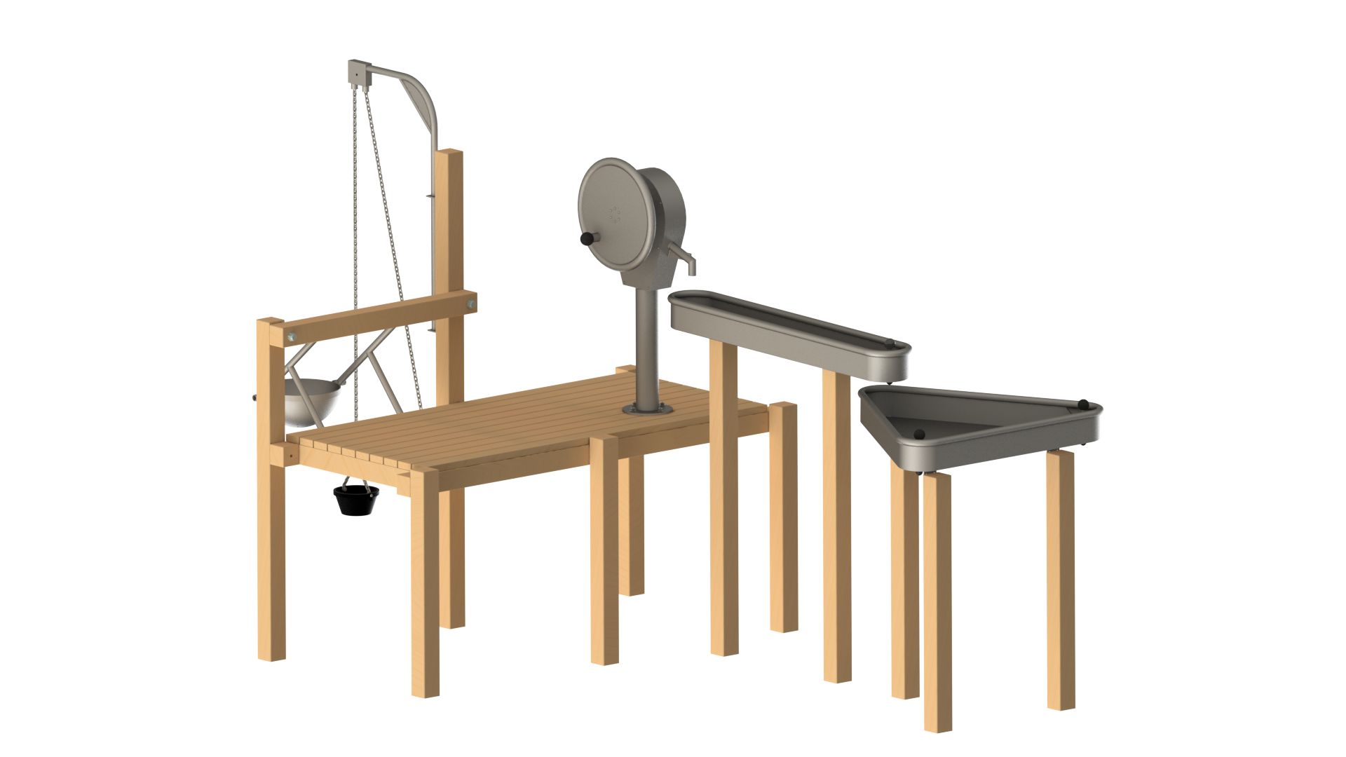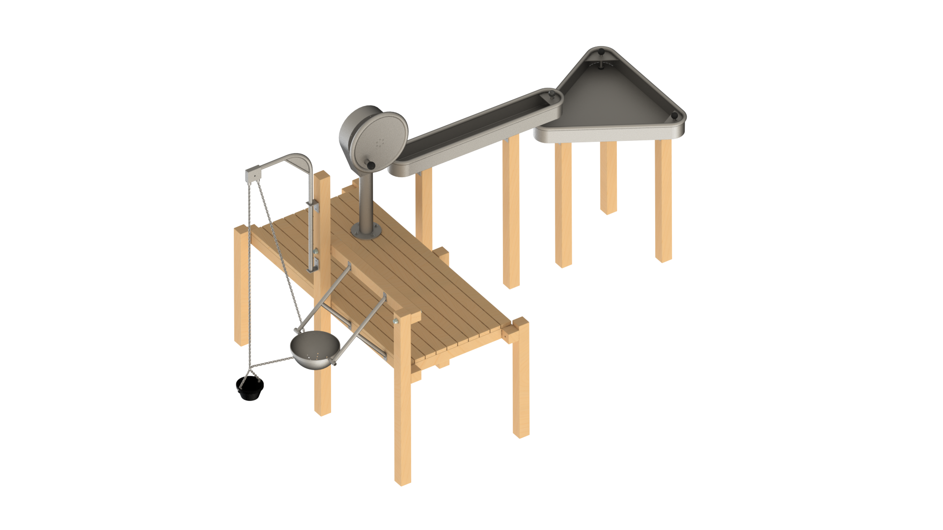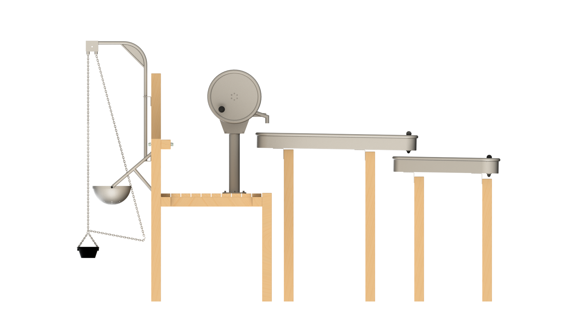 The Waterplay Module 240 is a variation of the Waterplay module 239. With a longer platform incorporating a rotating sand lift and a sand sieve, this new module can cater more kids as well!