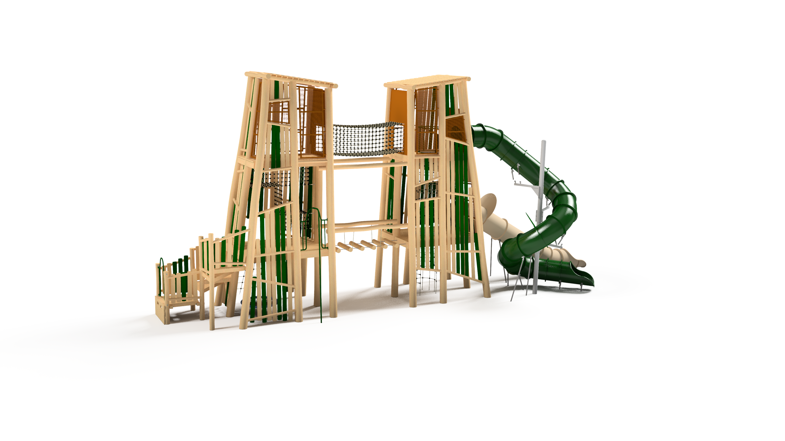 These huge towers (standing over 7m tall!) are the centre of attraction at any play space. Challenge your fear of heights and crawl along our rope net bridge suspended 5m in the air. With multiple rope net structures, fire poles, wobbly log bridge, baskets swings, tube slides and much, much more excitement in store.
