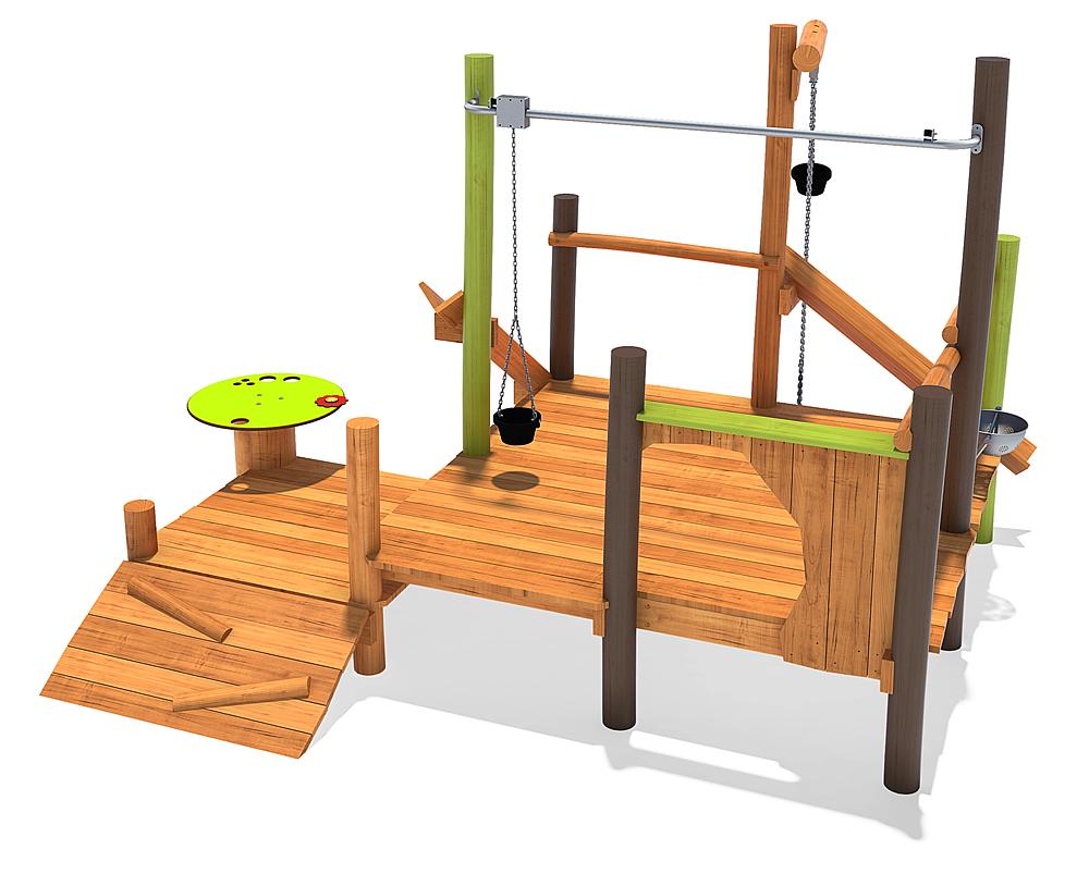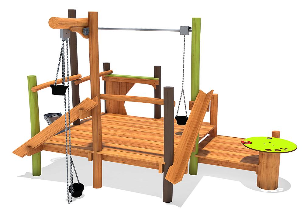 A multitude of play functions makes our sand construction site a favourite meeting point. Great large 2mx2m platform allow for many users at one time. Packed with play value, this module includes activities such as access ramp, overhead sand crane, fixed sand crane, sand tray, sand sieve, 2 x sand chutes, play counter …