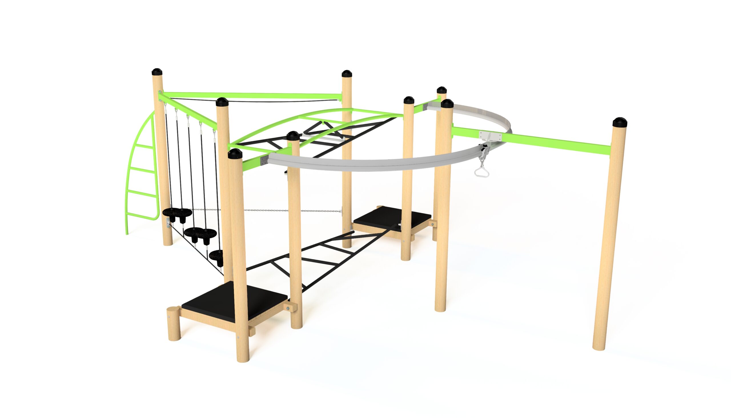 This Xtreme Fitness Cube 554 compacts a large mix of activity into a relatively small space. It incorporates balance, overhead, and climbing activities along with our ever-popular Aeroglide.