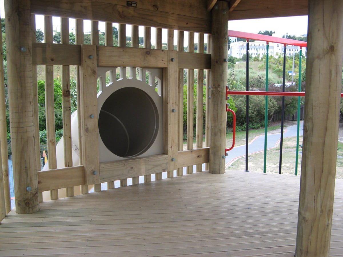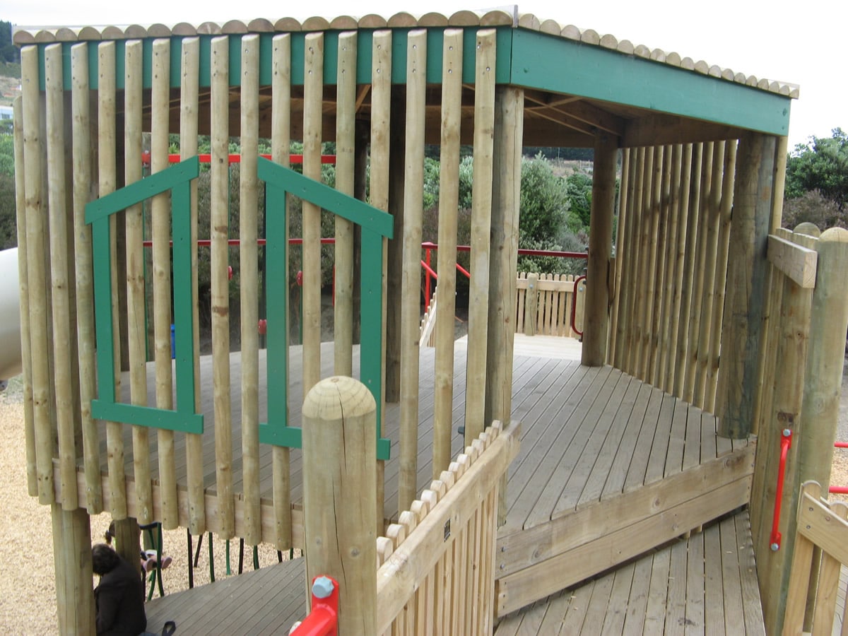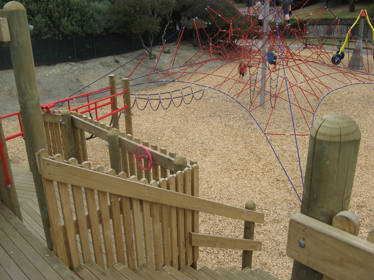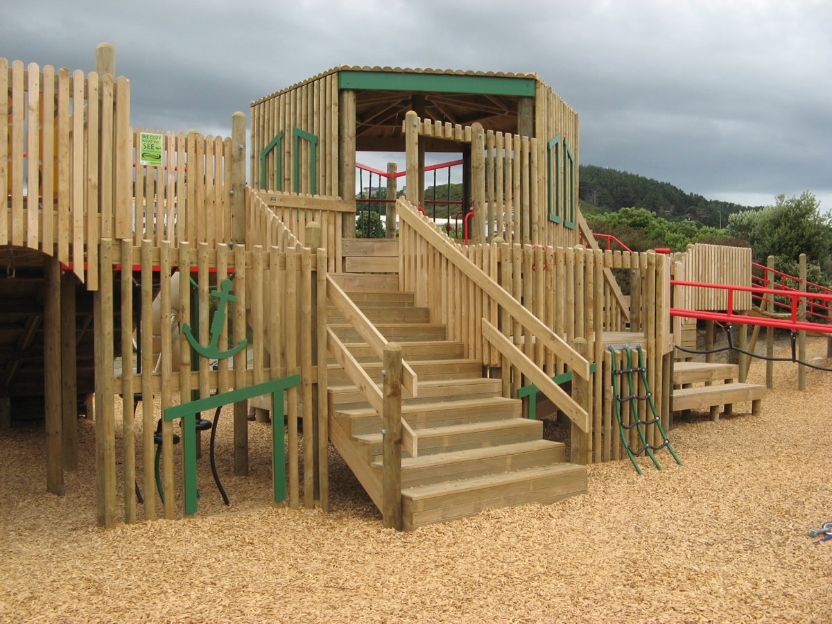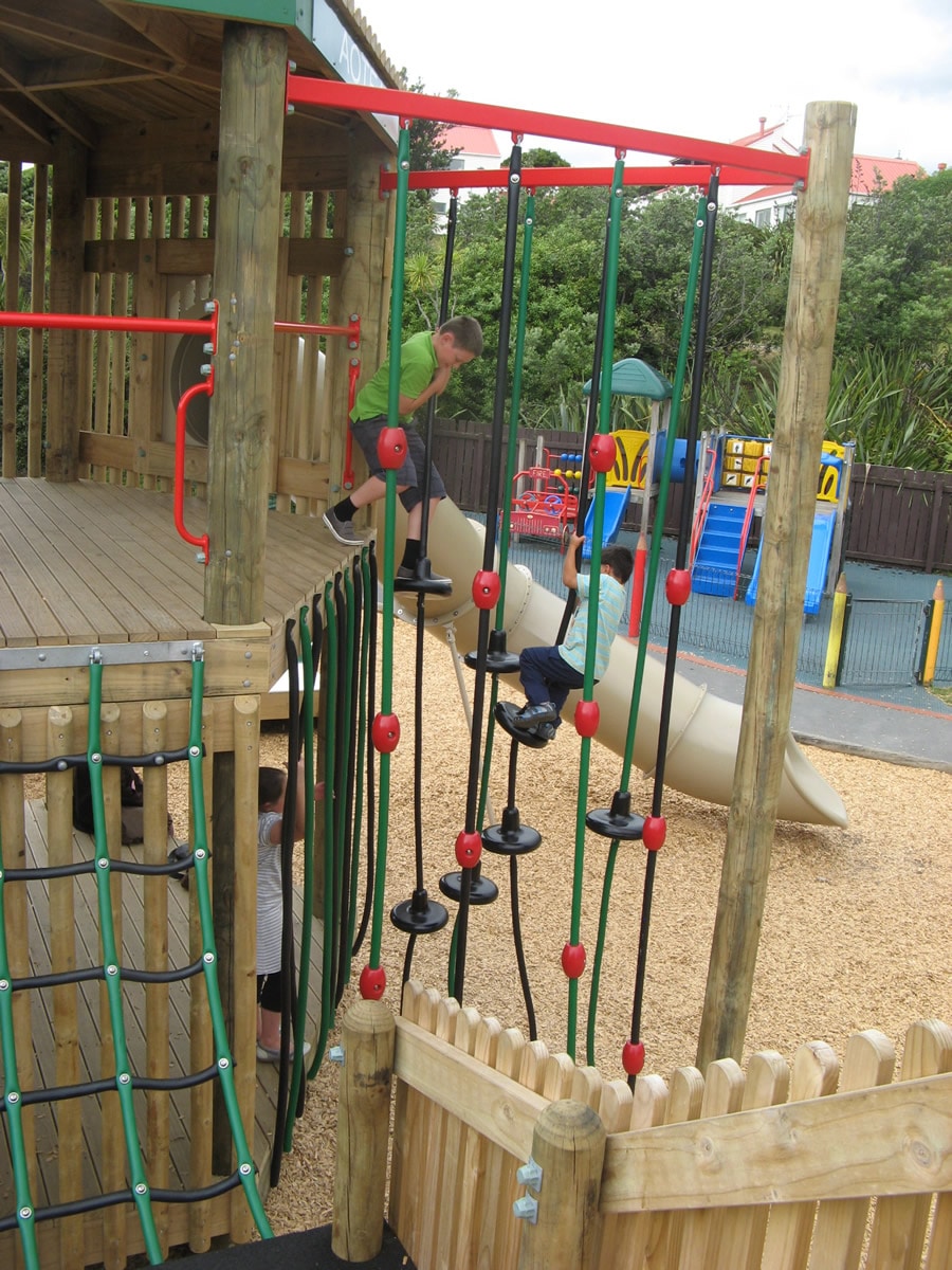 Playground Centre worked with the Porirua City Council to design a new fort structure which linked to pathways within the well-used Reserve as well as being linked to a new 7.4m high climbing tower.