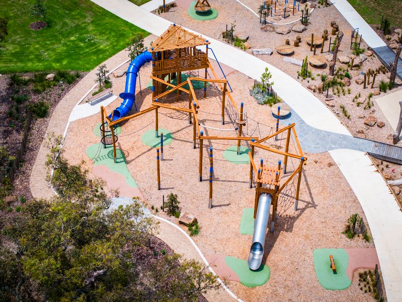 Playground Centre was once again trusted to help deliver a tailored solution for the junior play zone in River Red Gum Park, developed as part of Katalia Stage 205. Collaborating with Urban Edge Landscape Architects and ULS Group to create yet another adventure-filled nature play experience in River Red Gum Park — and strengthen Katalia’s reputation for family-friendly green spaces.