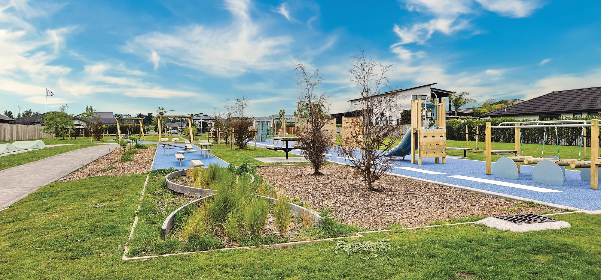 Boasting a creative mix of innovative playground pieces and areas to engage in games of frisbee or football, this is a place for all to come together in adventurous or relaxing recreational pursuits. Matua Road playground is a place to play, a place to stay.