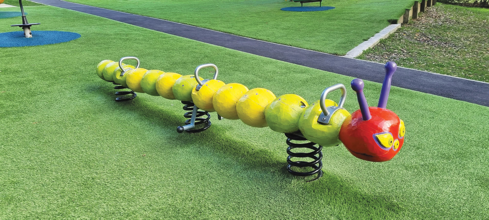 Opportunities for creative and adventurous play abound in this exciting and exhilarating playground. Thoughtfully laid out with safe, soft artificial grass as a safety surfacing, the play space features multiple zones, each incorporating new and refurbished equipment for energy-fuelled fun, whether flying solo or with others. The natural space is an invitation for all to enjoy the great outdoors, with a picnic table invites family feasting and ample seats and shading ensures everyone enjoys their play and relaxation in comfort.