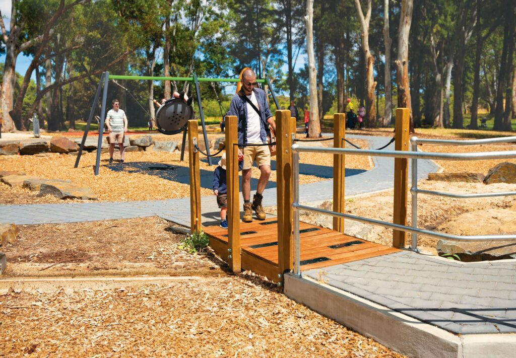 The exciting new playground at Paddocks Reserve prioritises interactive nature play for children of diverse ages and abilities, featuring a splashtastic water play area and a variety of accessible play equipment.