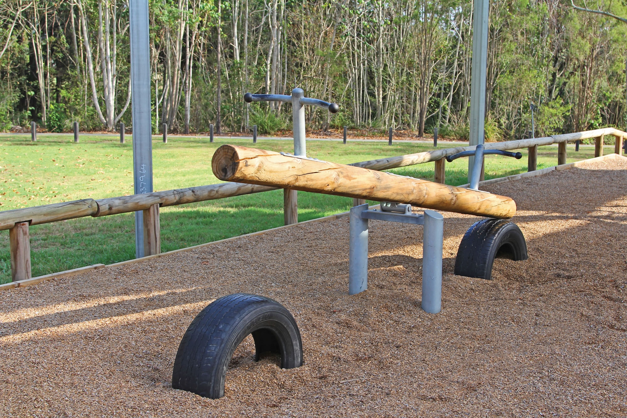 Nestled in a bushland setting, the playground features a mix of play and fitness equipment that has been crafted to blend with nature and designed for parents and children to enjoy together.